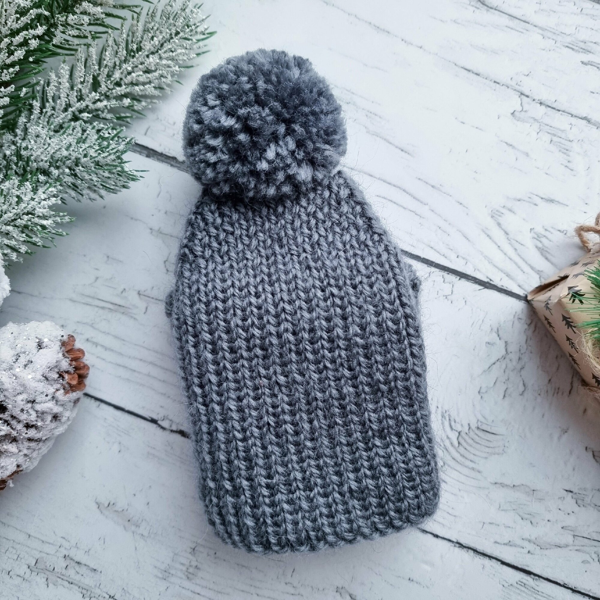 Купить Вязаная шапка для животных с открытыми ушками, темно-серый, S