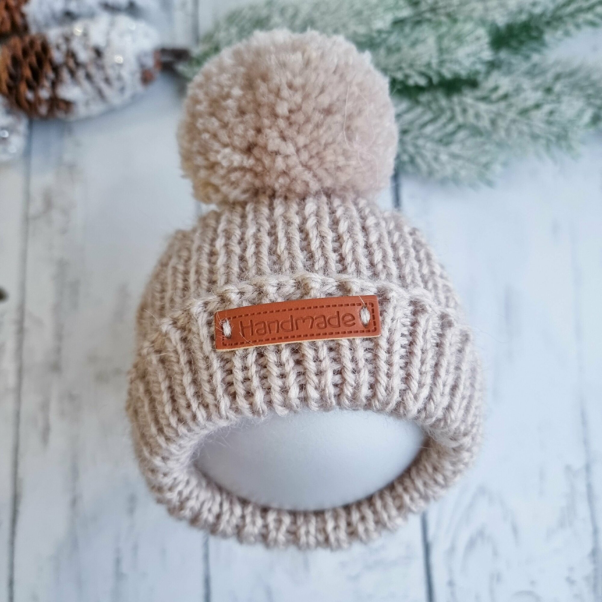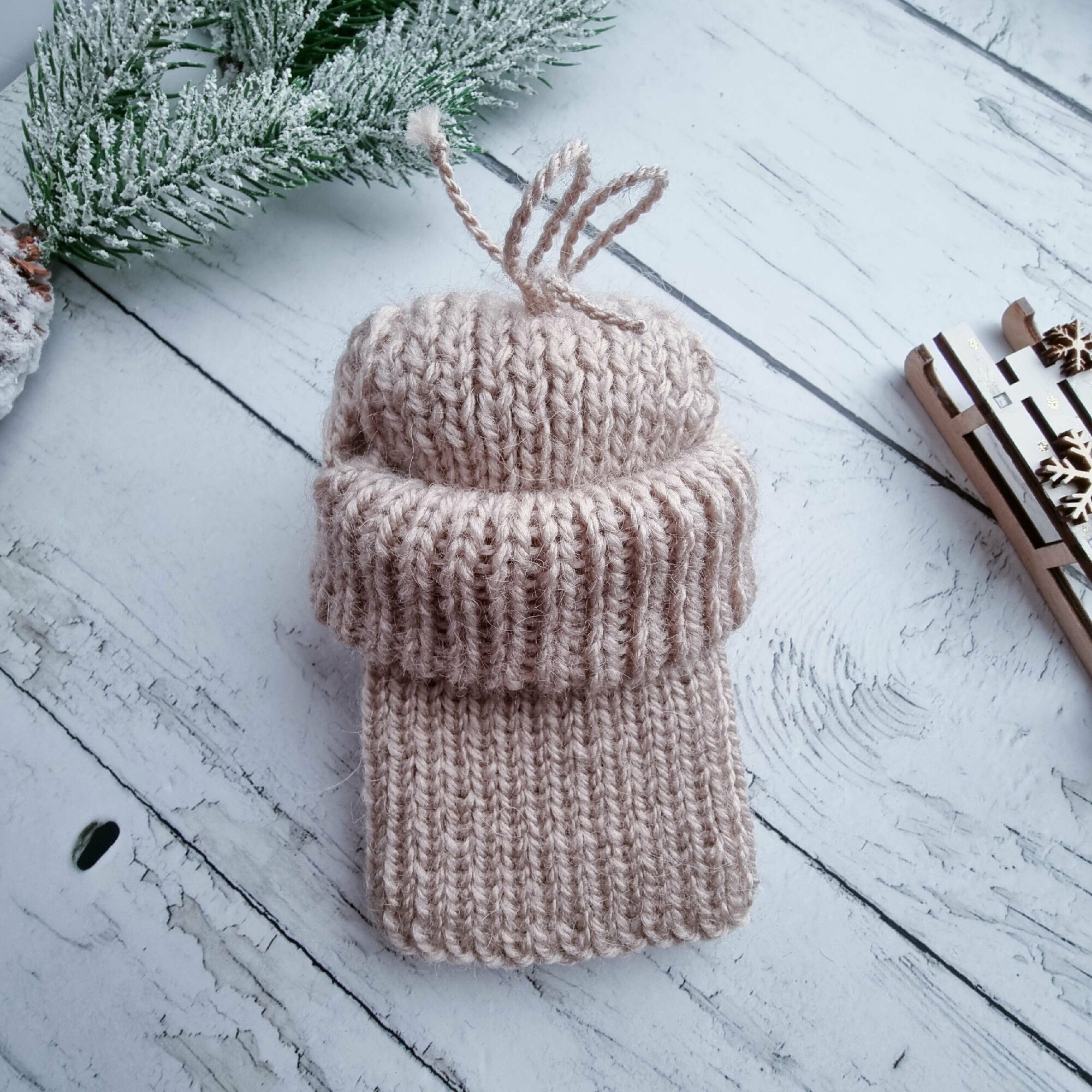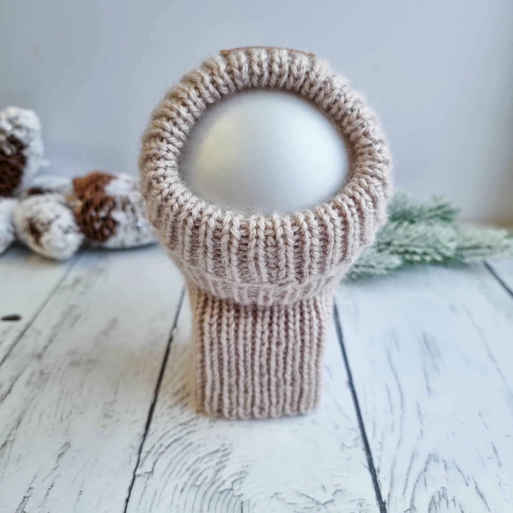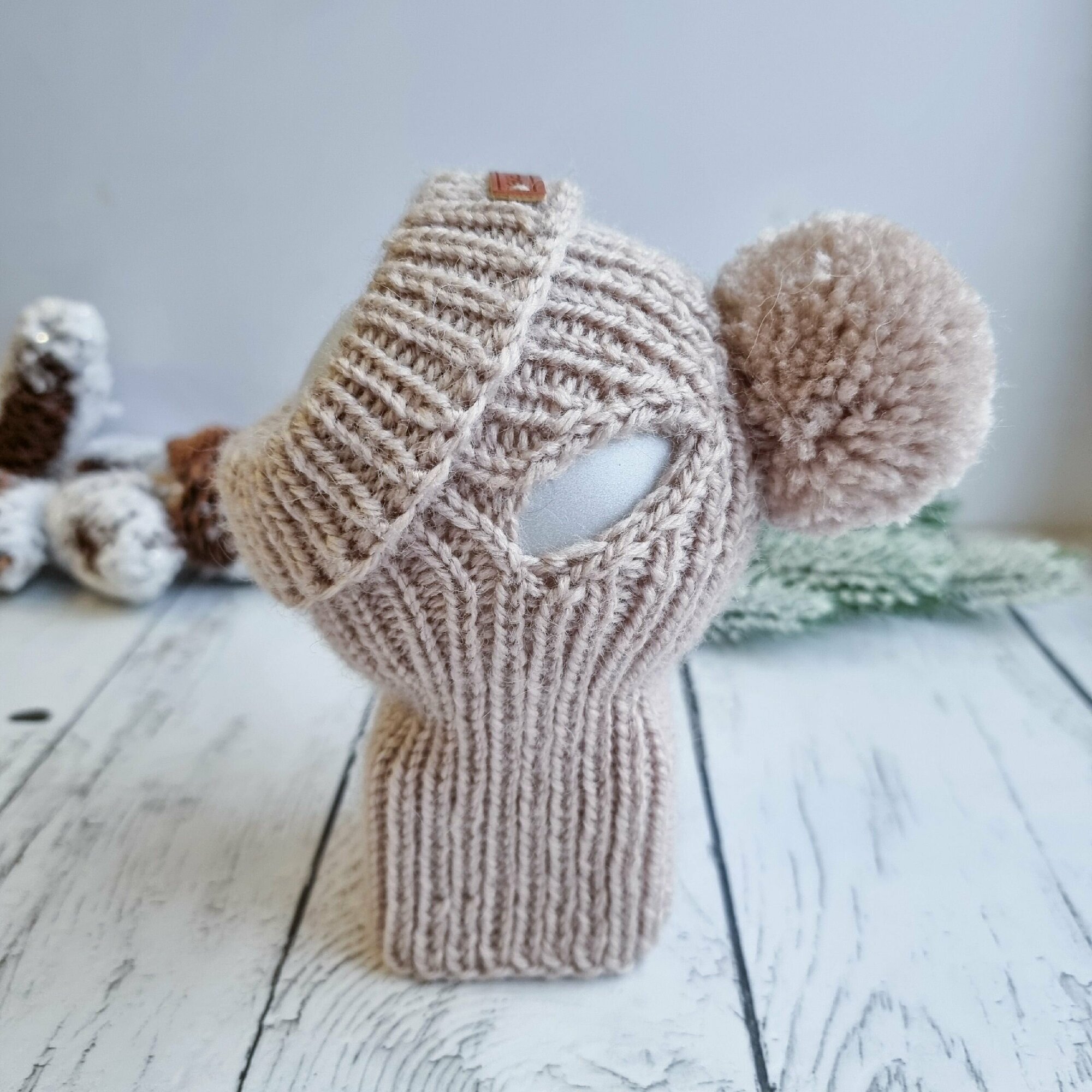Вязаная шапка для животных с открытыми ушками, темный беж, М