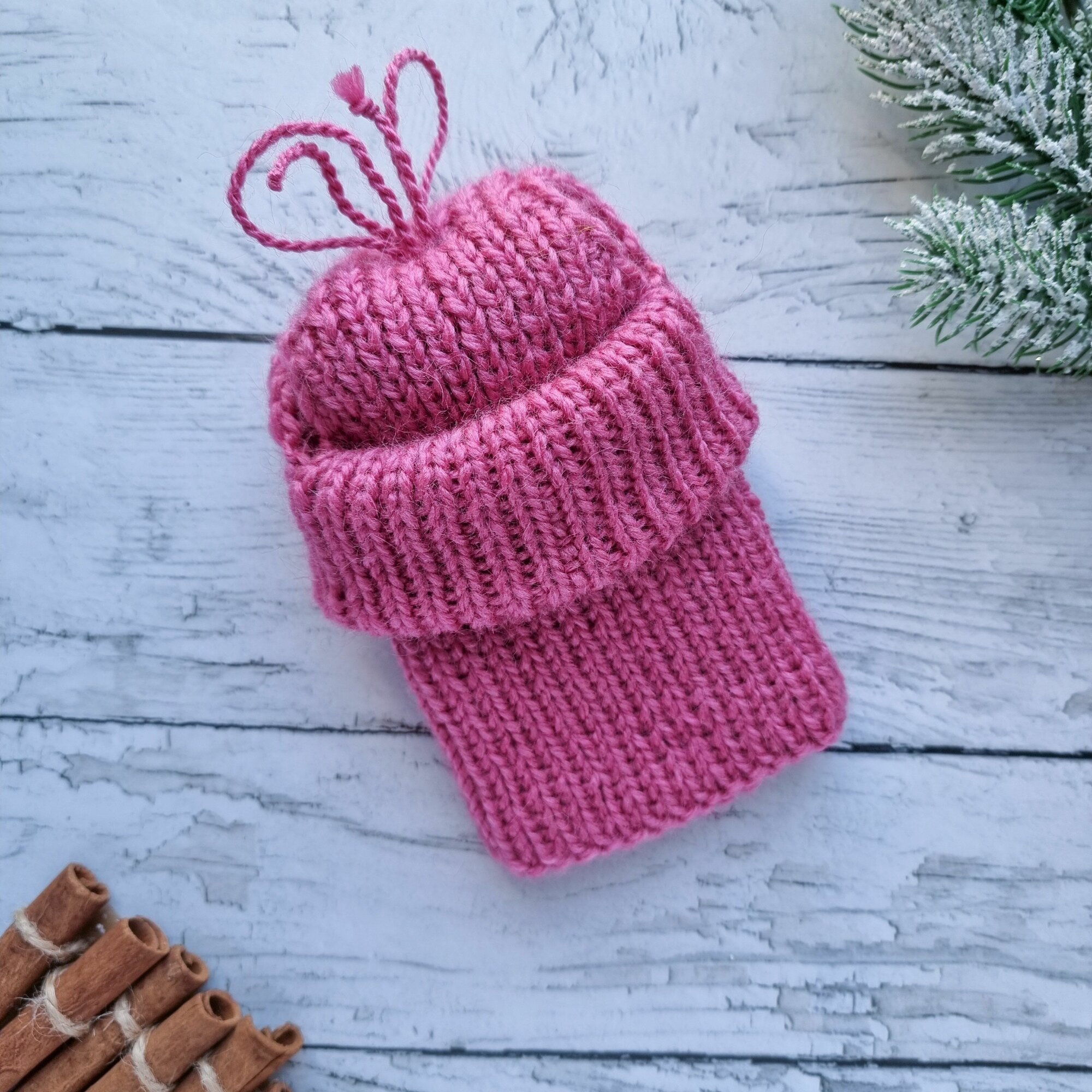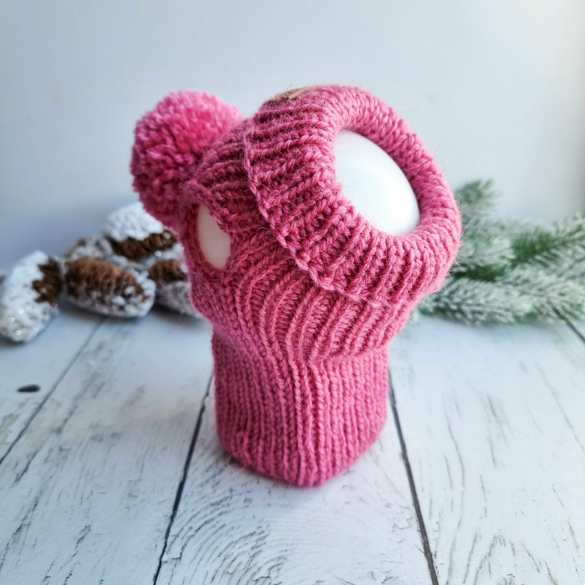 Вязаная шапка для животных с открытыми ушками, пыльная фуксия, S
