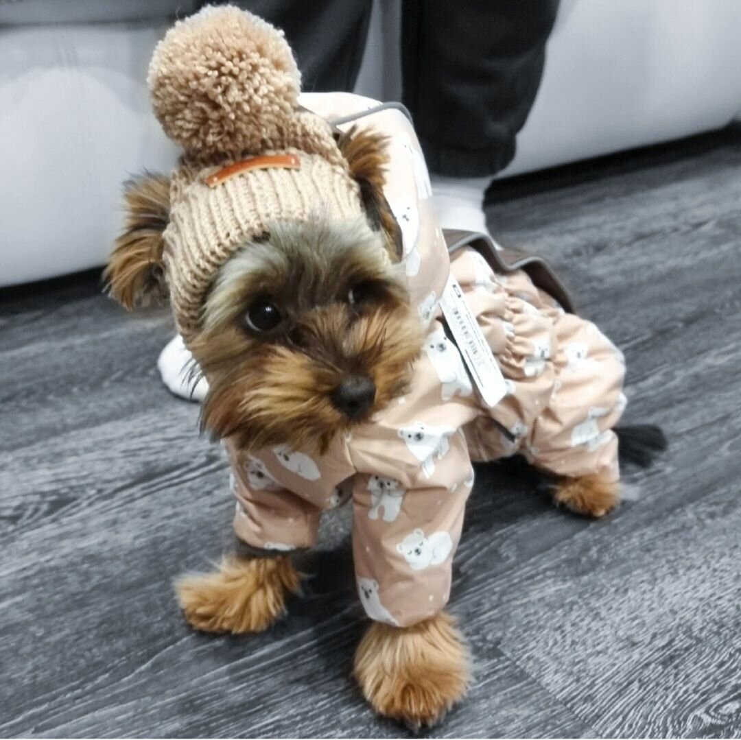 Вязаная шапка для животных с открытыми ушками, темный беж, М