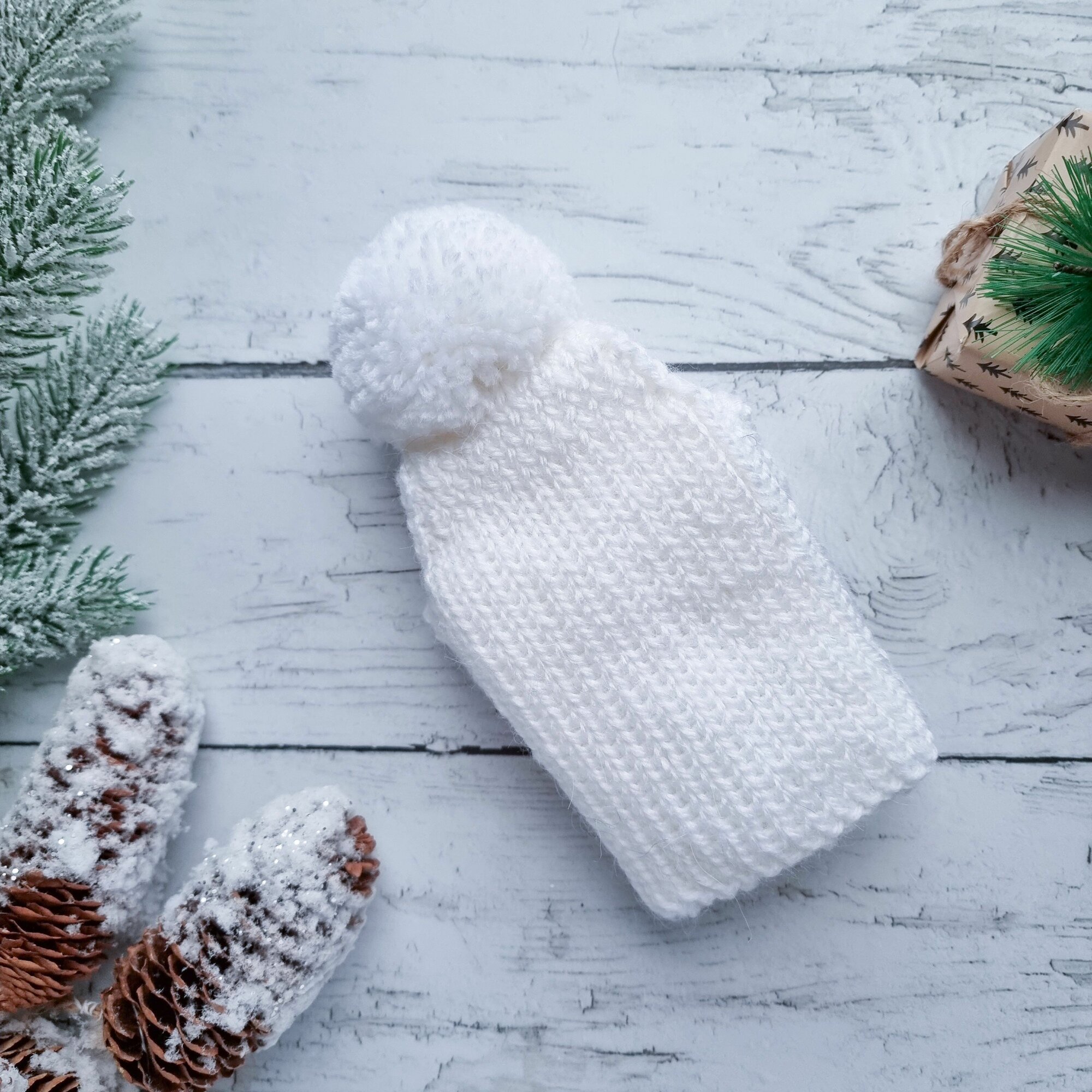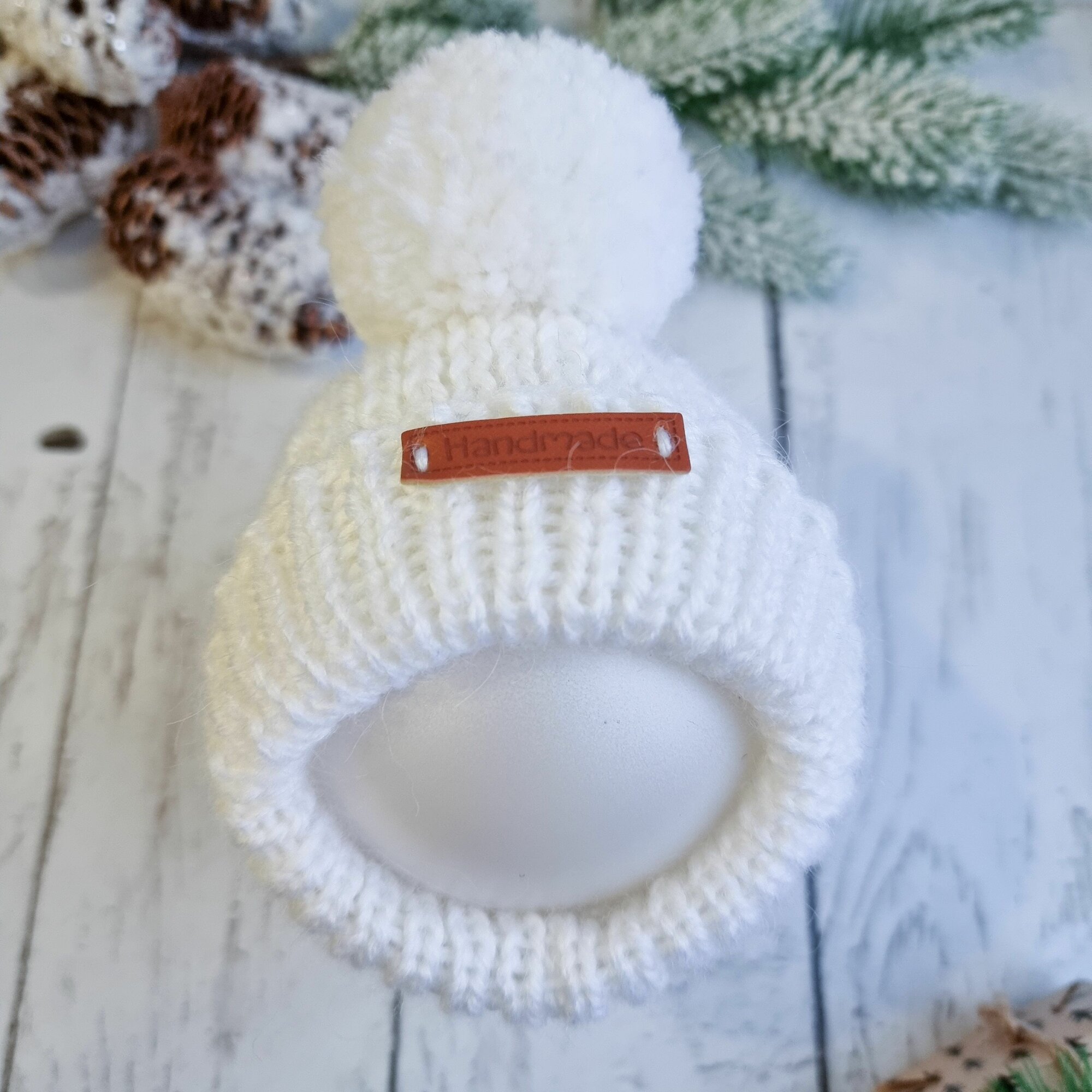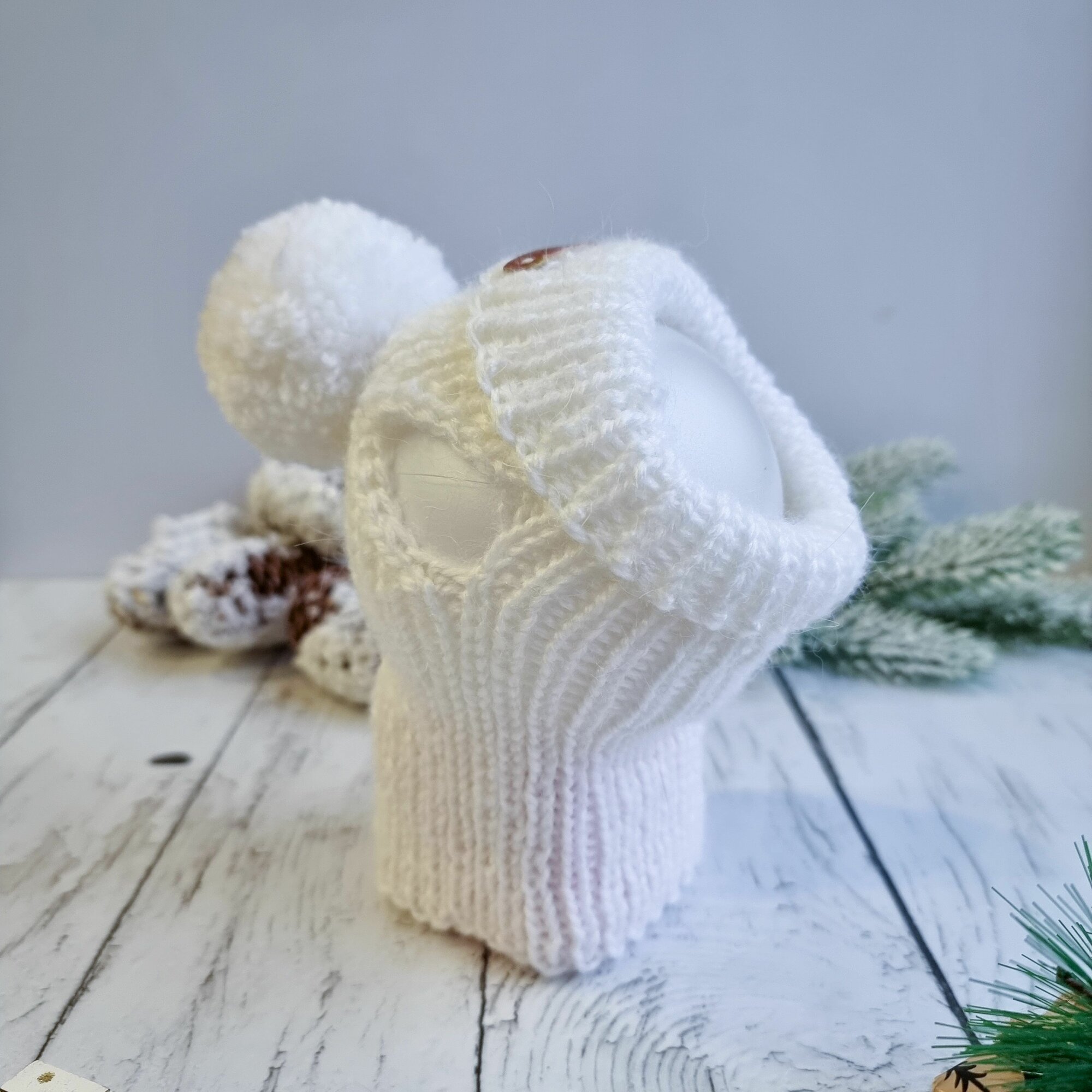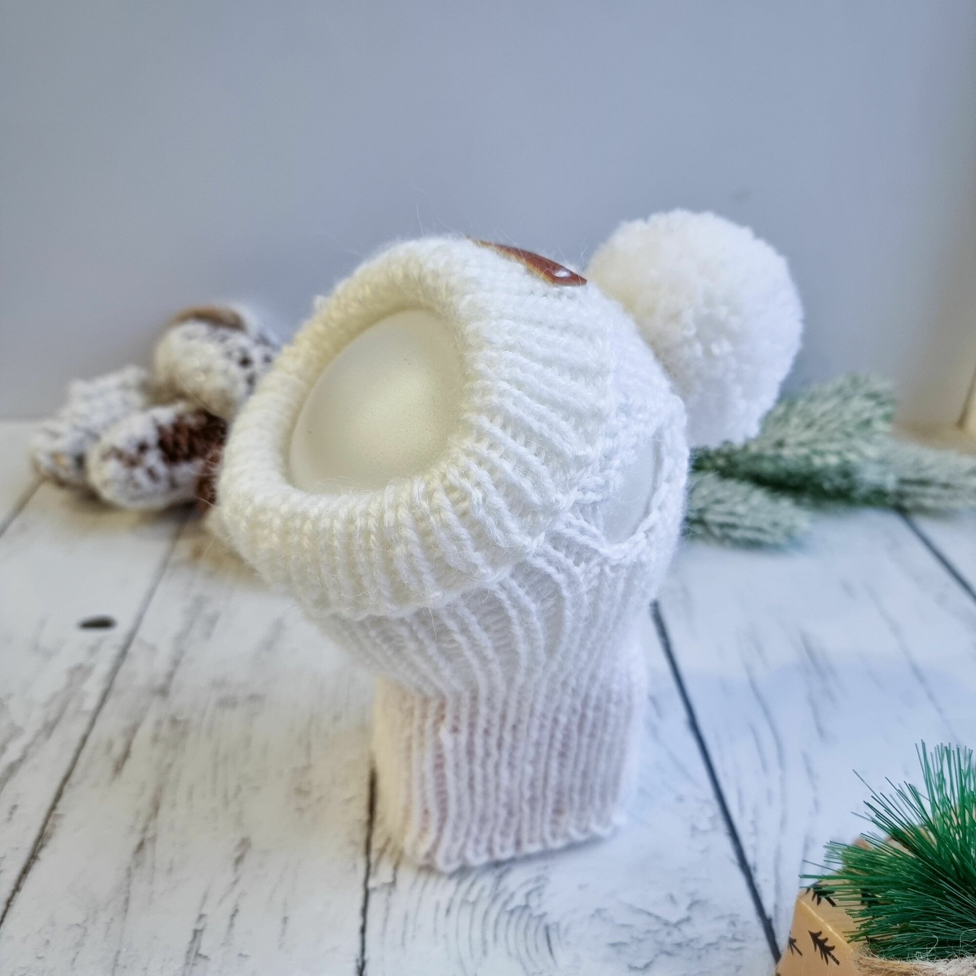 Вязаная шапка для животных с открытыми ушками, белый (молоко), S
