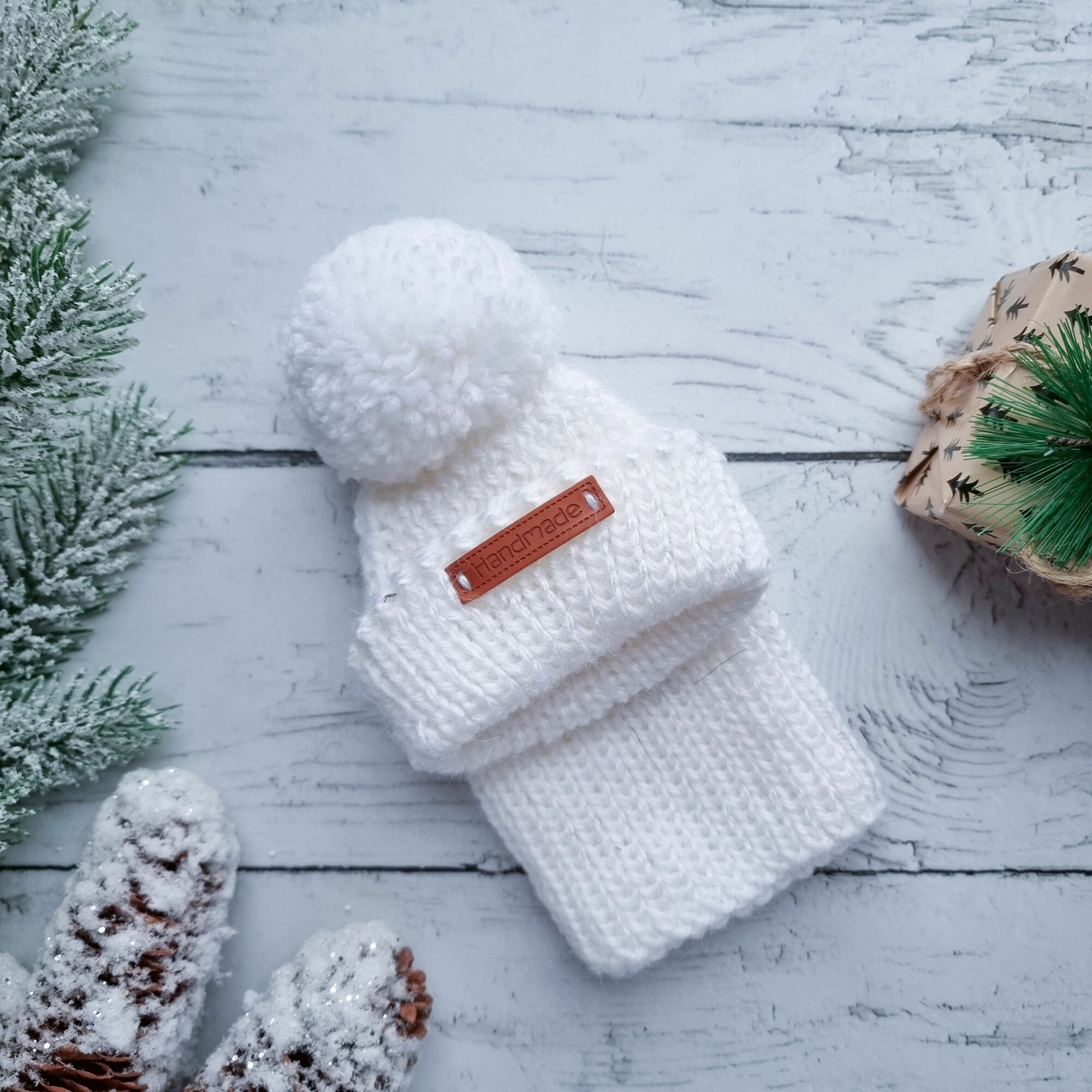 Купить Вязаная шапка для животных с открытыми ушками, белый, М