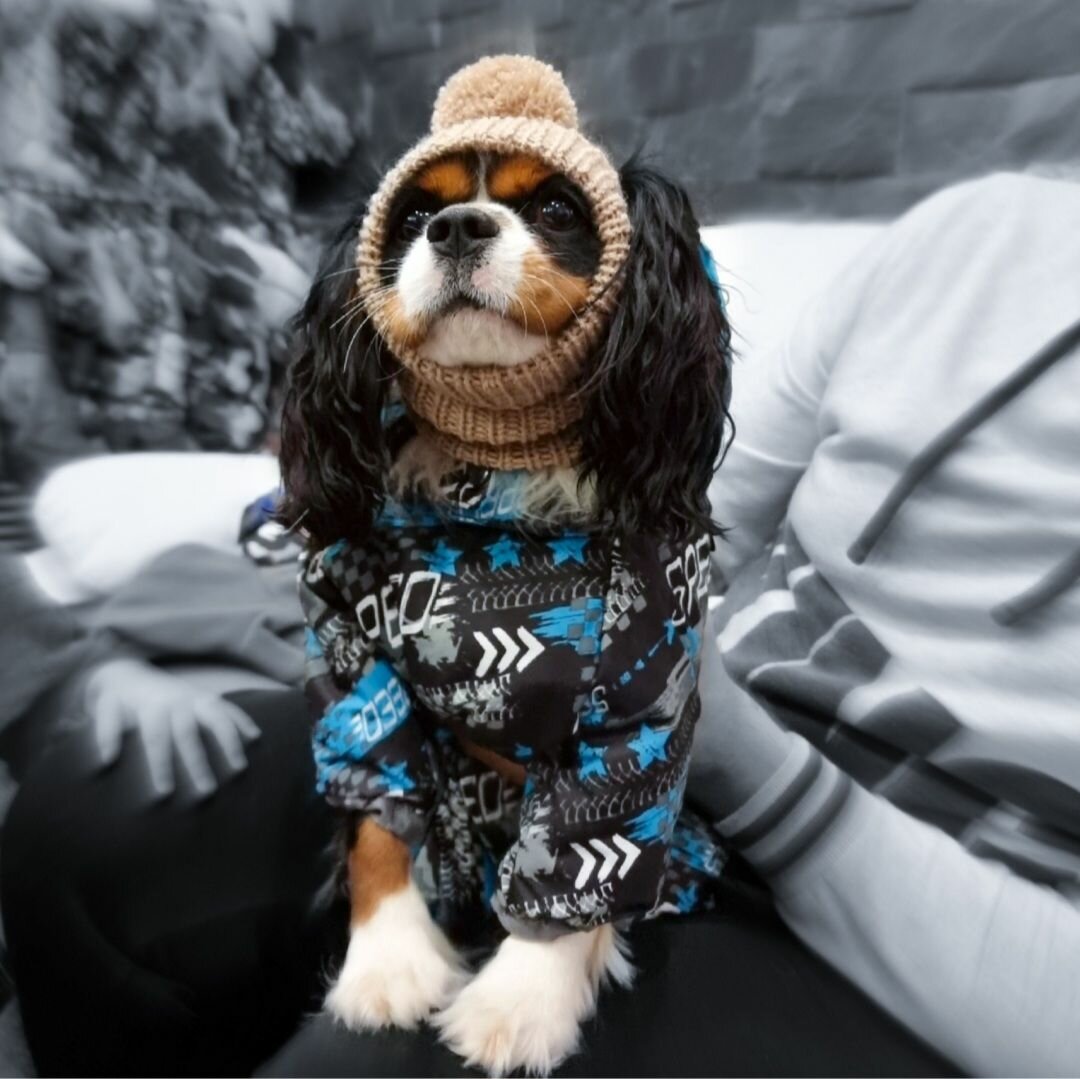 Вязаная шапка для животных с открытыми ушками, синий, М