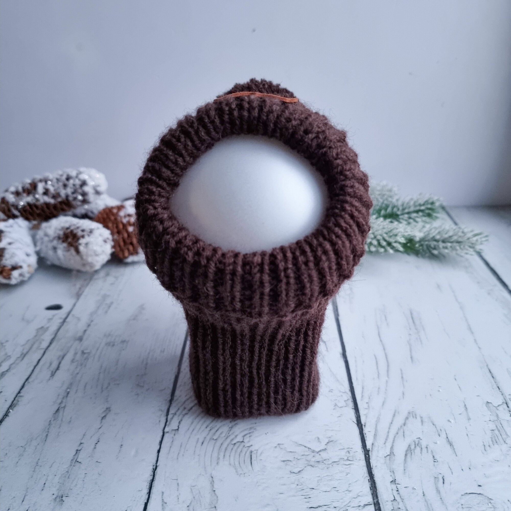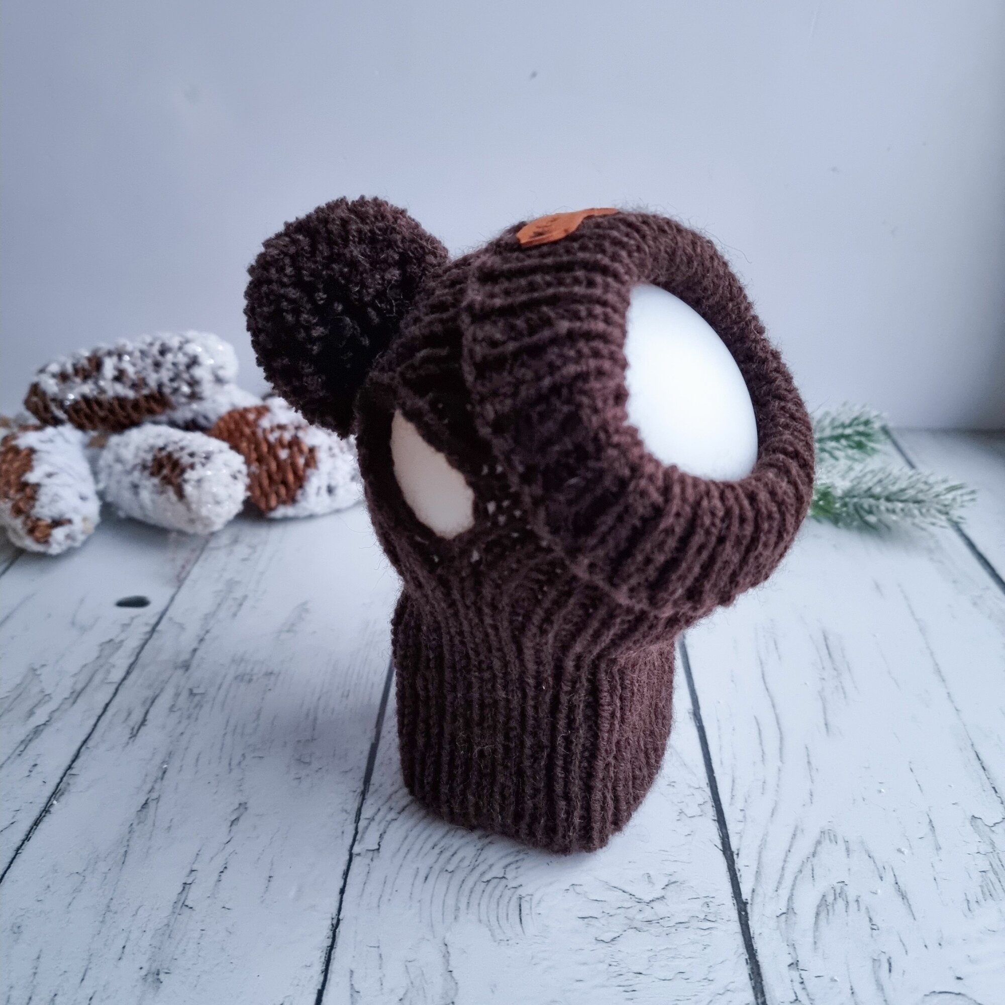 Вязаная шапка для животных с открытыми ушками, коричневый, S