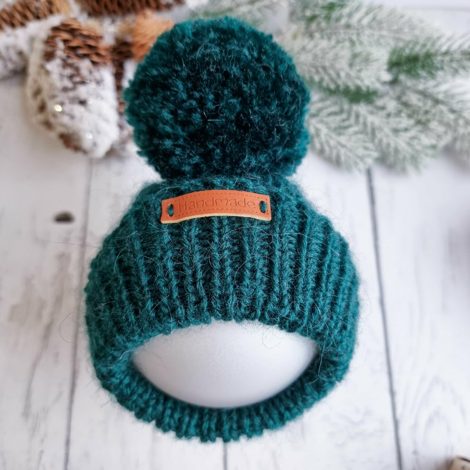 Вязаная шапка для животных с открытыми ушками, зеленый, М