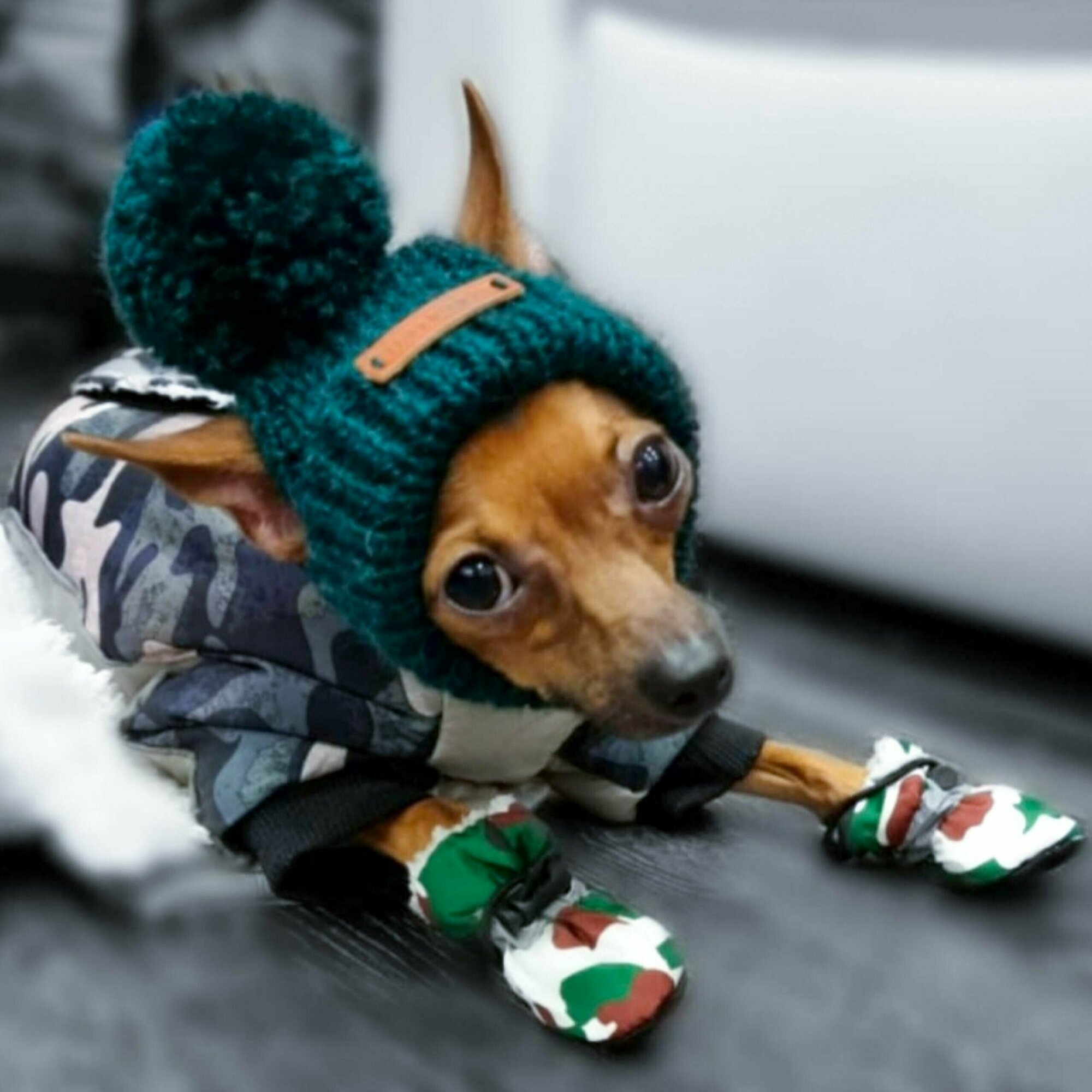 Вязаная шапка для животных с открытыми ушками, хаки, S