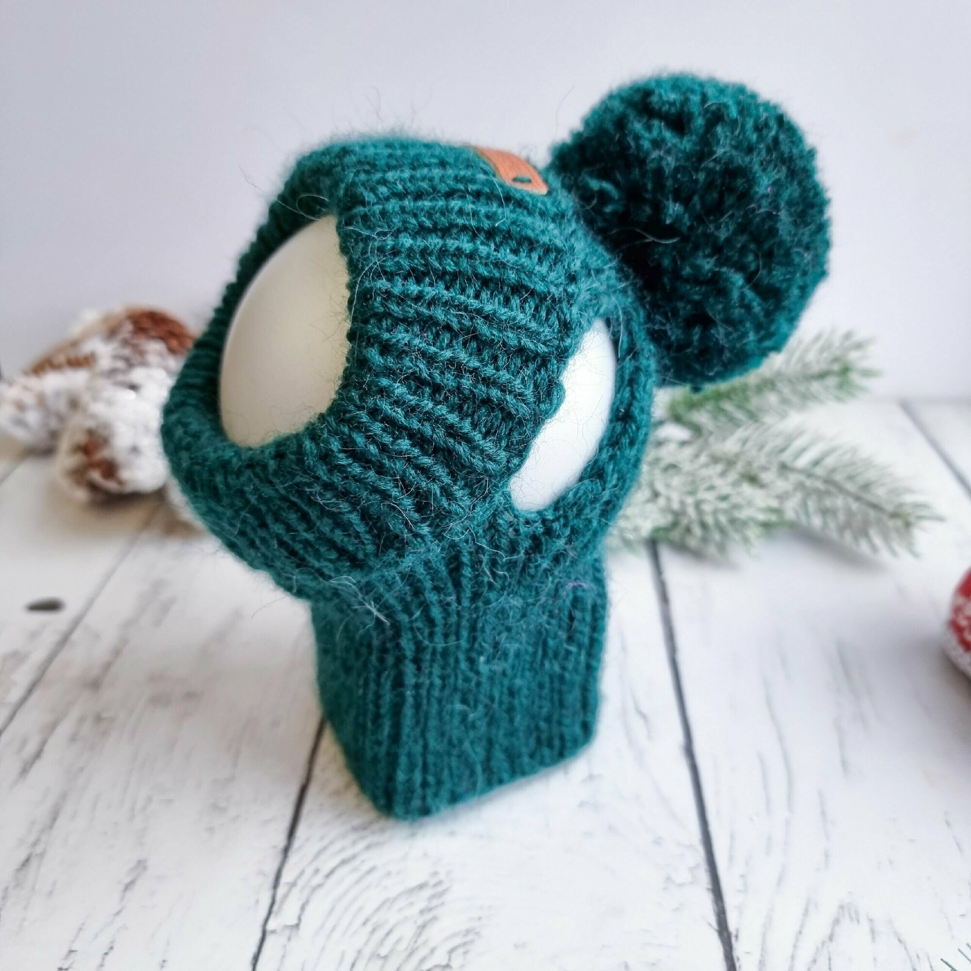 Купить Вязаная шапка для животных с открытыми ушками, зеленый, S