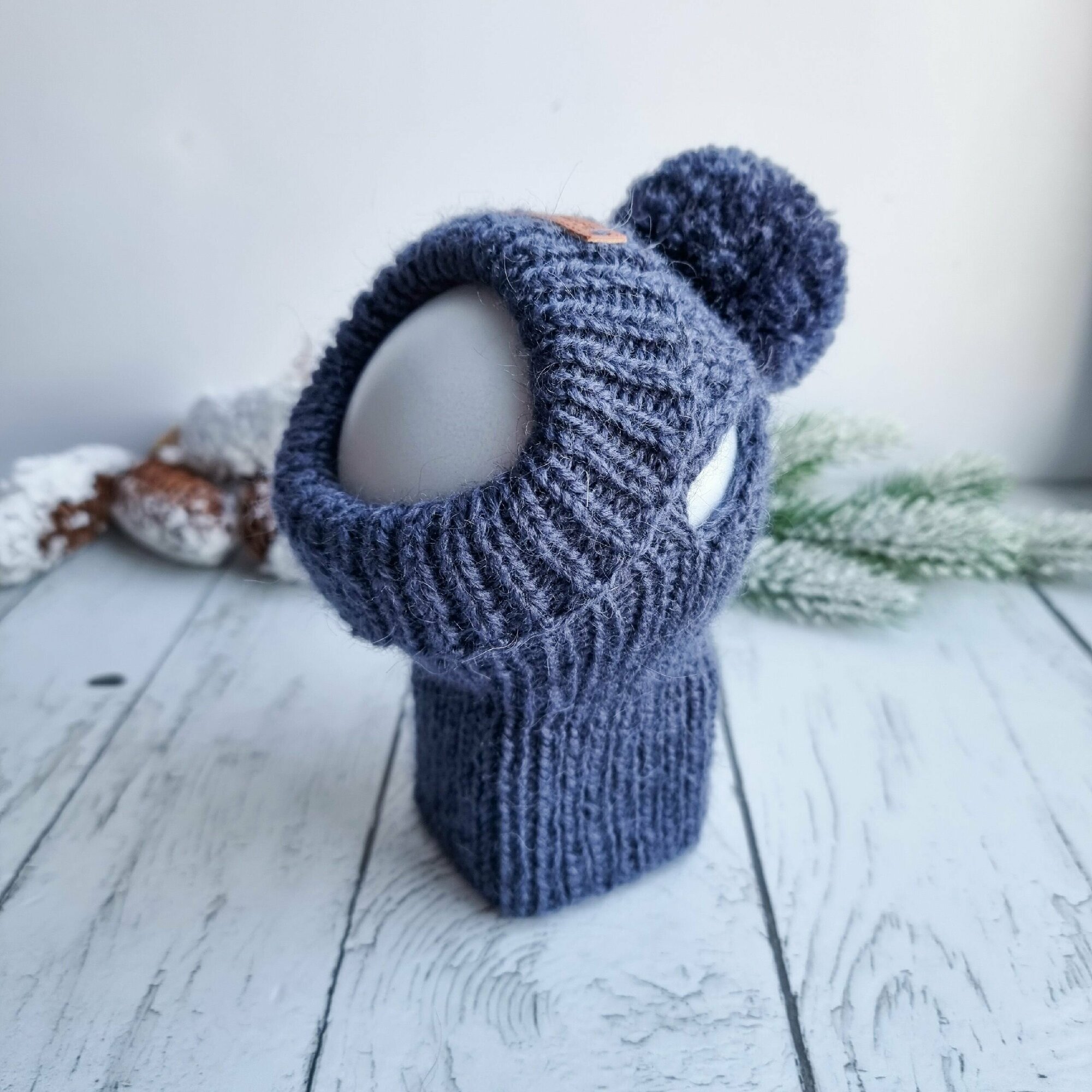 Вязаная шапка для животных с открытыми ушками, синий, S