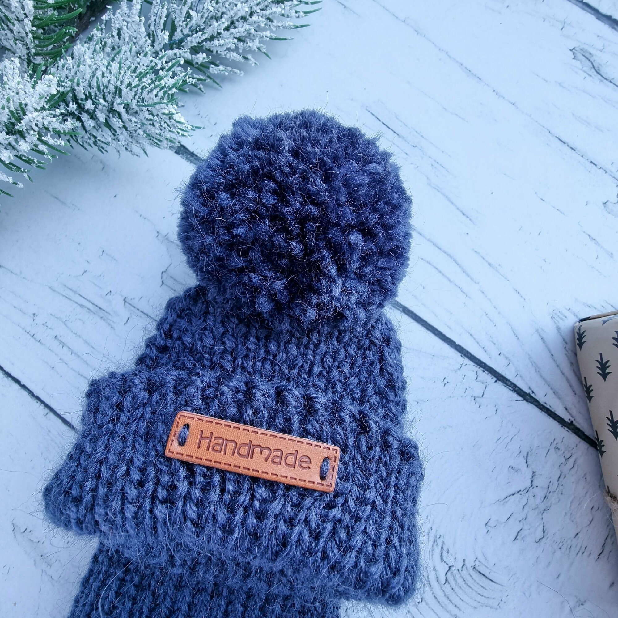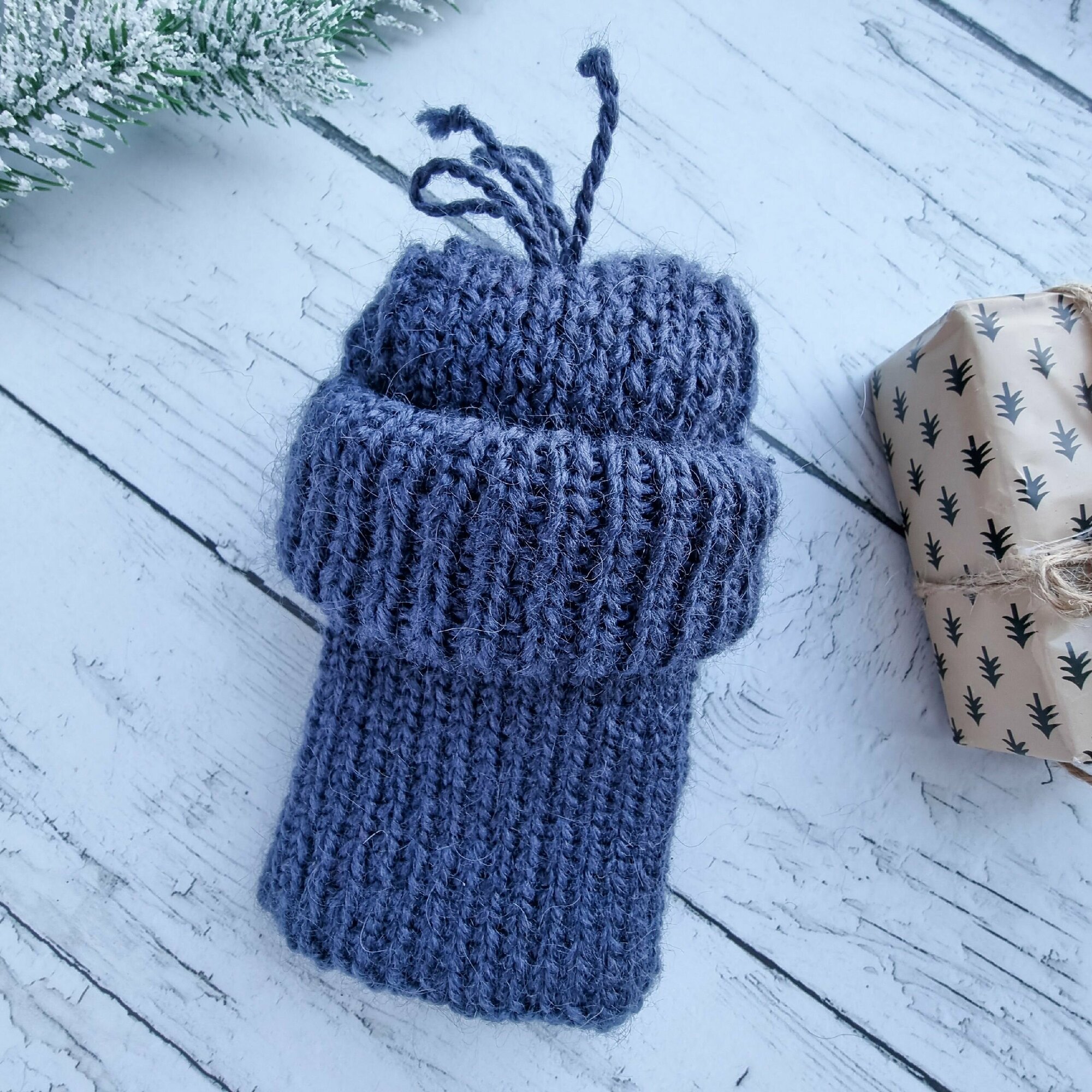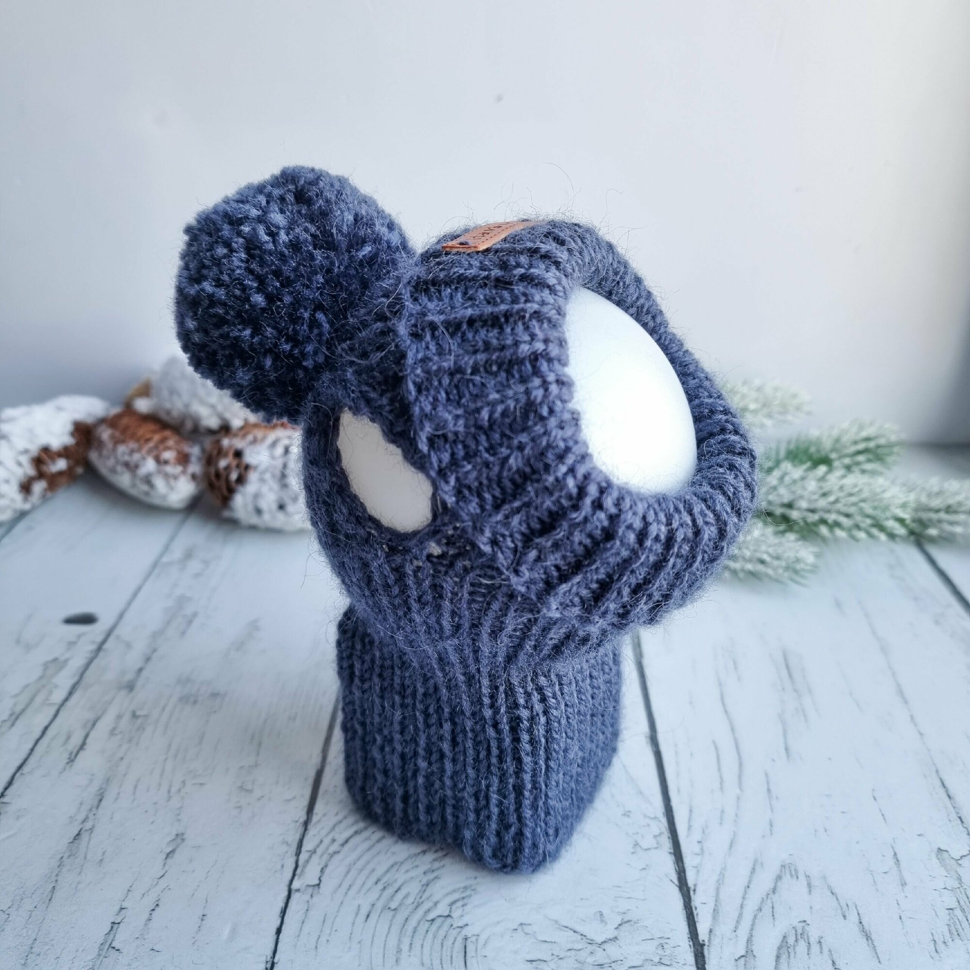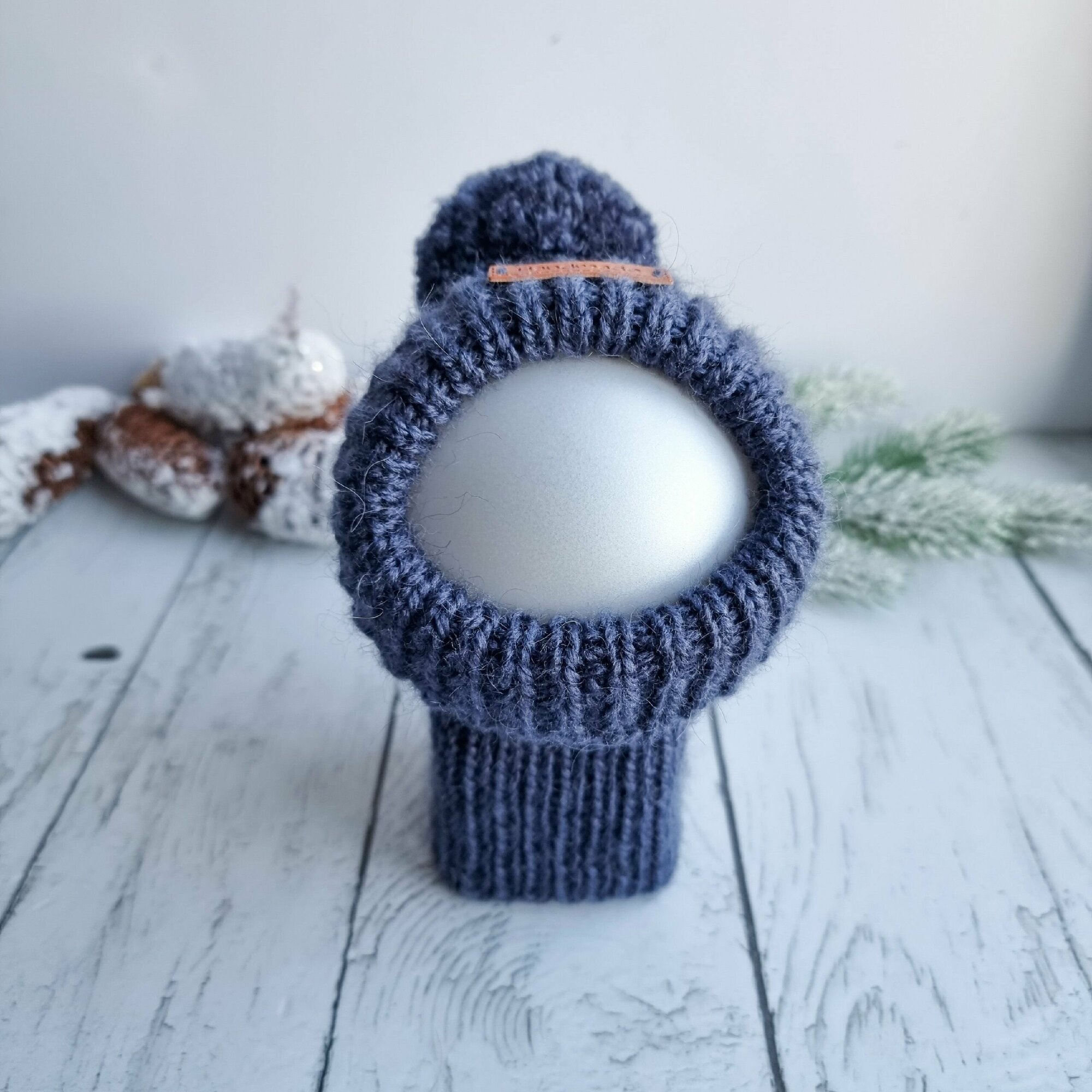 Вязаная шапка для животных с открытыми ушками, синий джинс, М