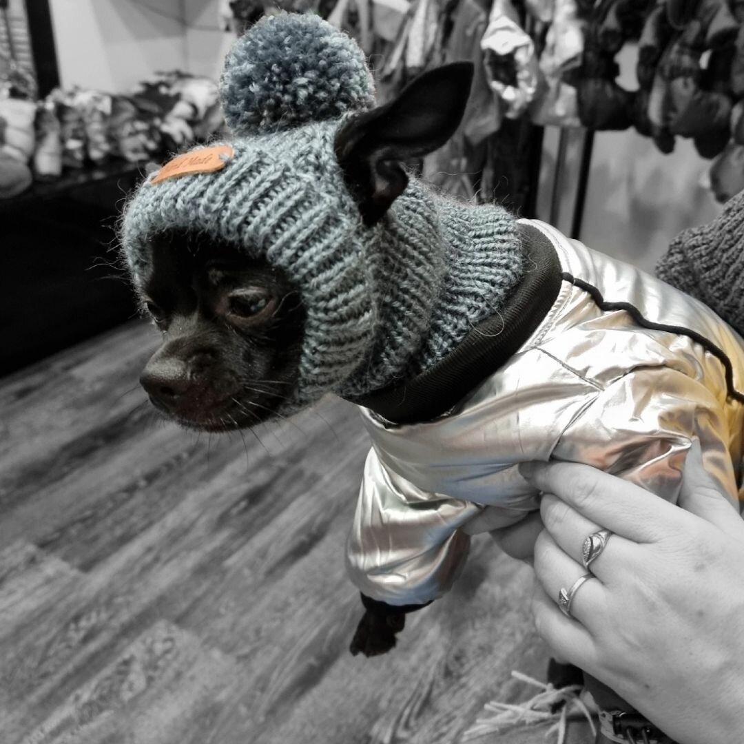 Вязаная шапка для животных с открытыми ушками, темно-серый, S