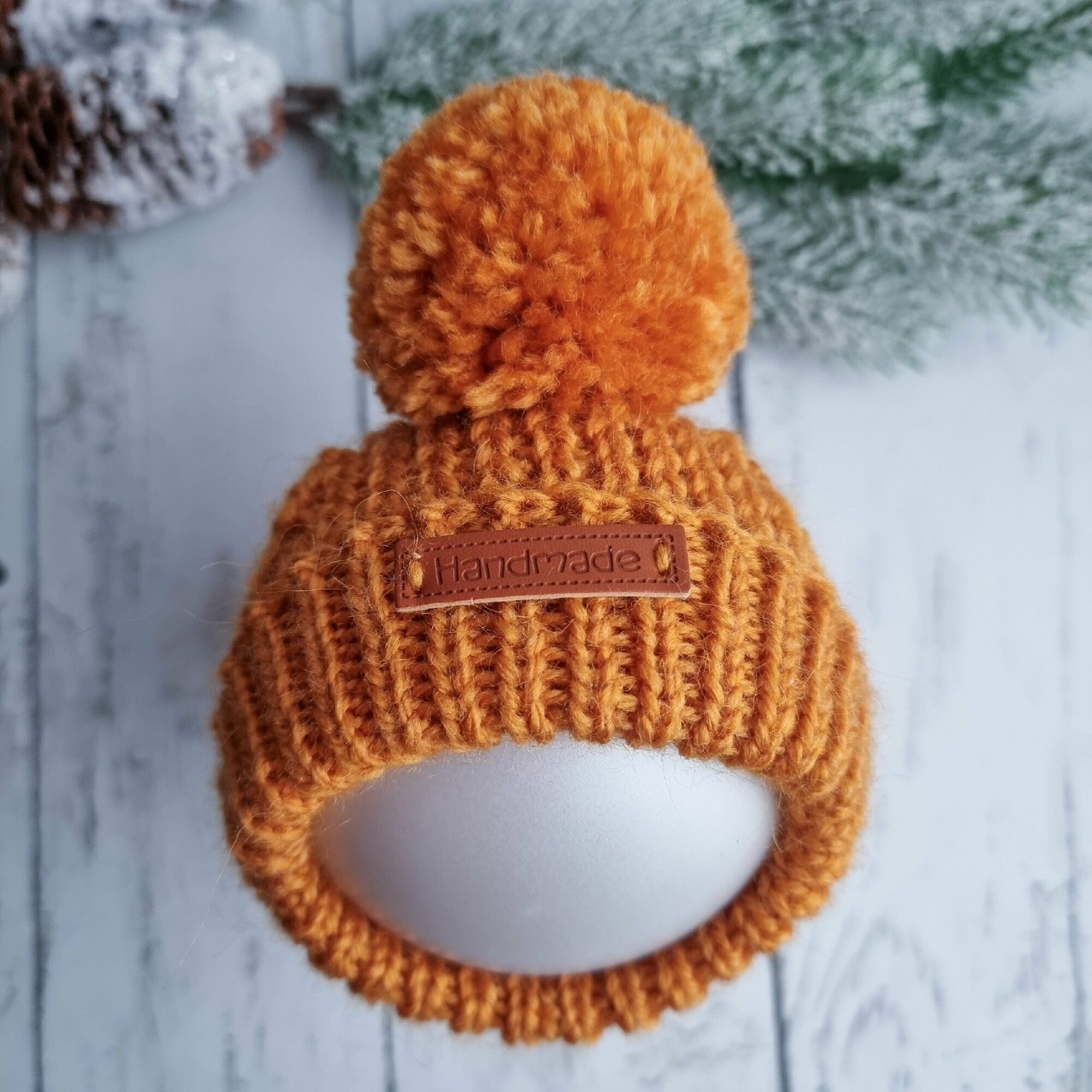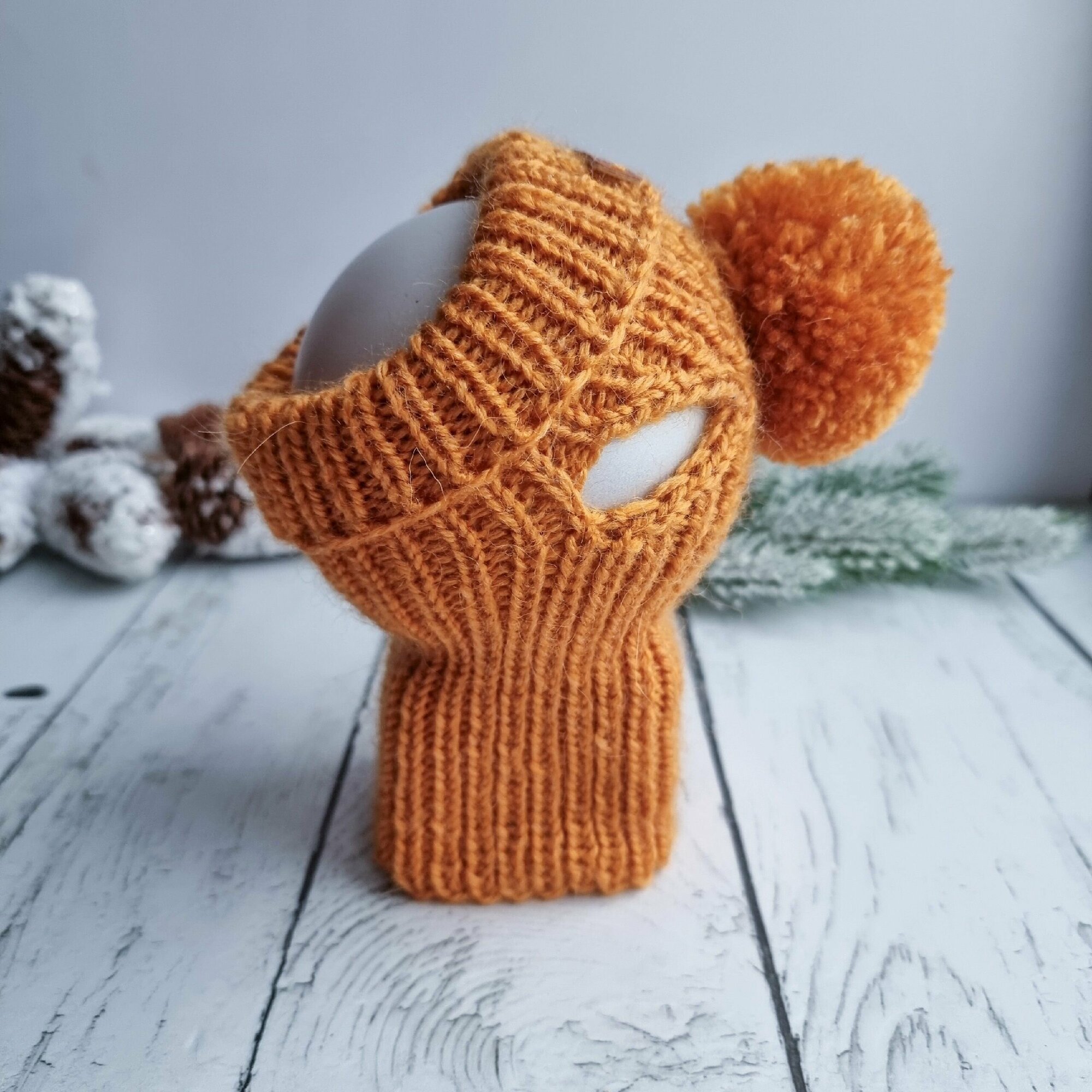 Купить Вязаная шапка для животных с открытыми ушками, оранжевый, S