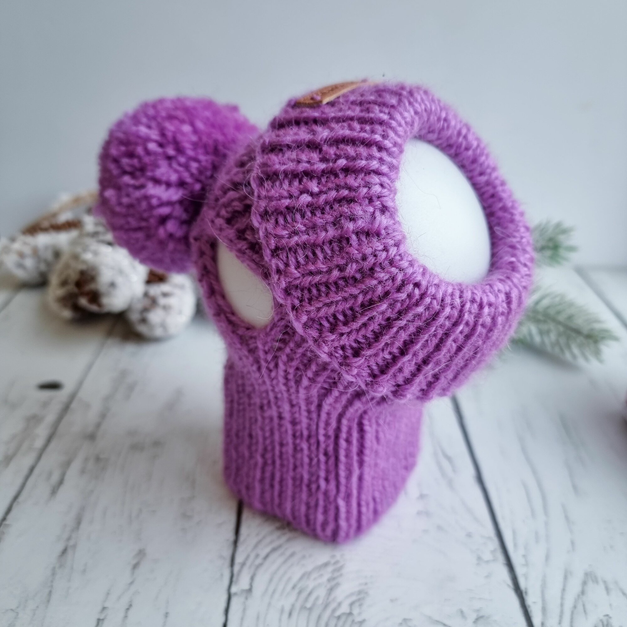 Вязаная шапка для животных с открытыми ушками, фиолетовый, S