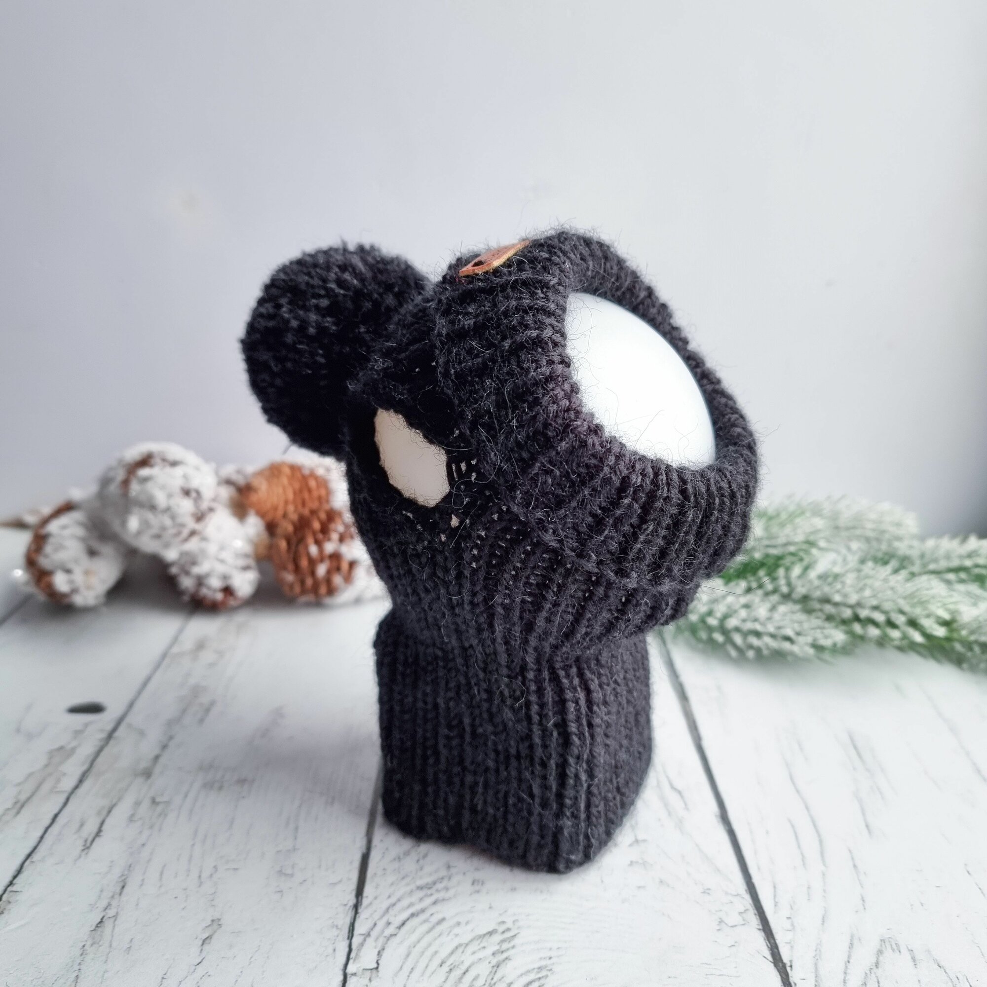 Купить Вязаная шапка для животных с открытыми ушками, черный, М