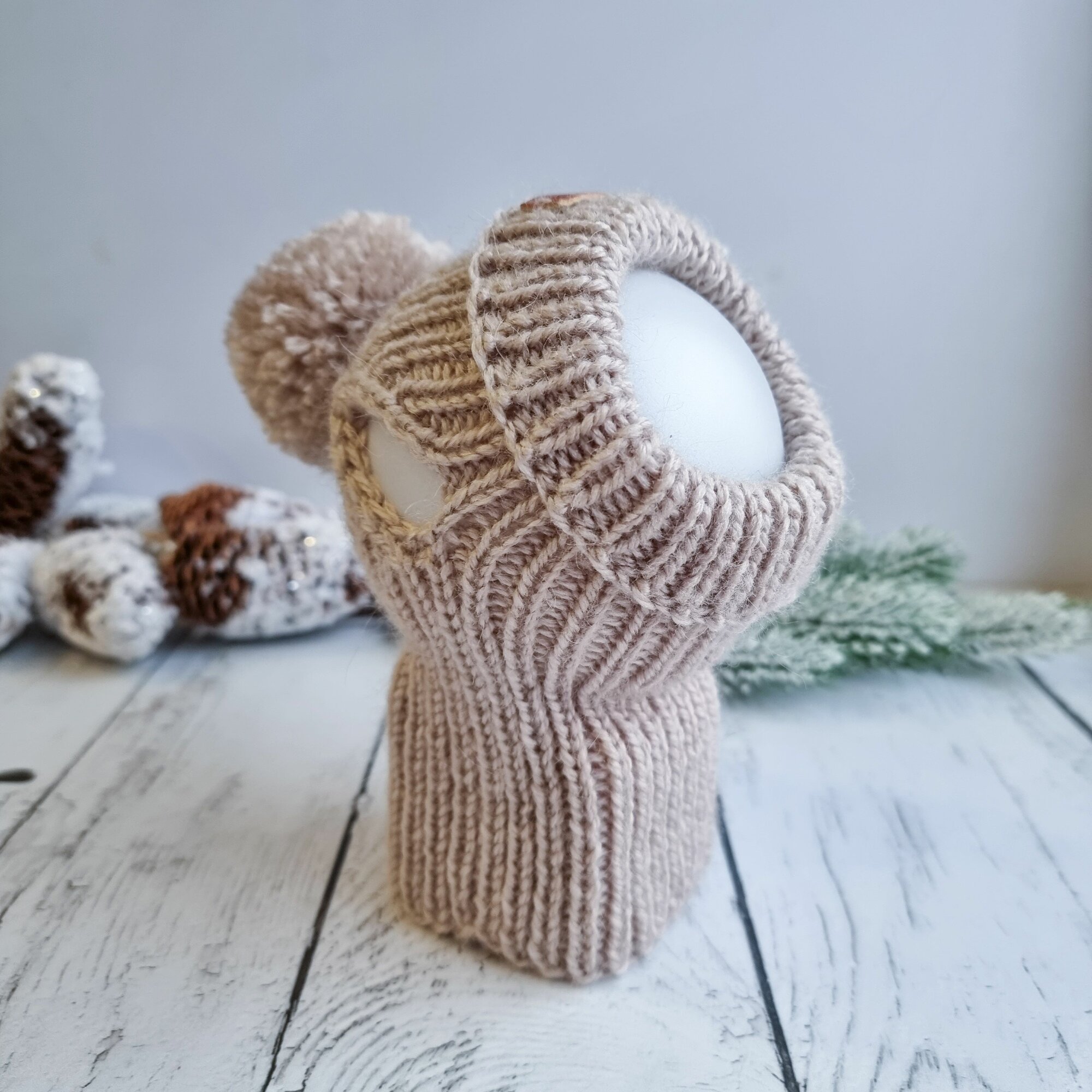 Вязаная шапка для животных с открытыми ушками, темный беж, М