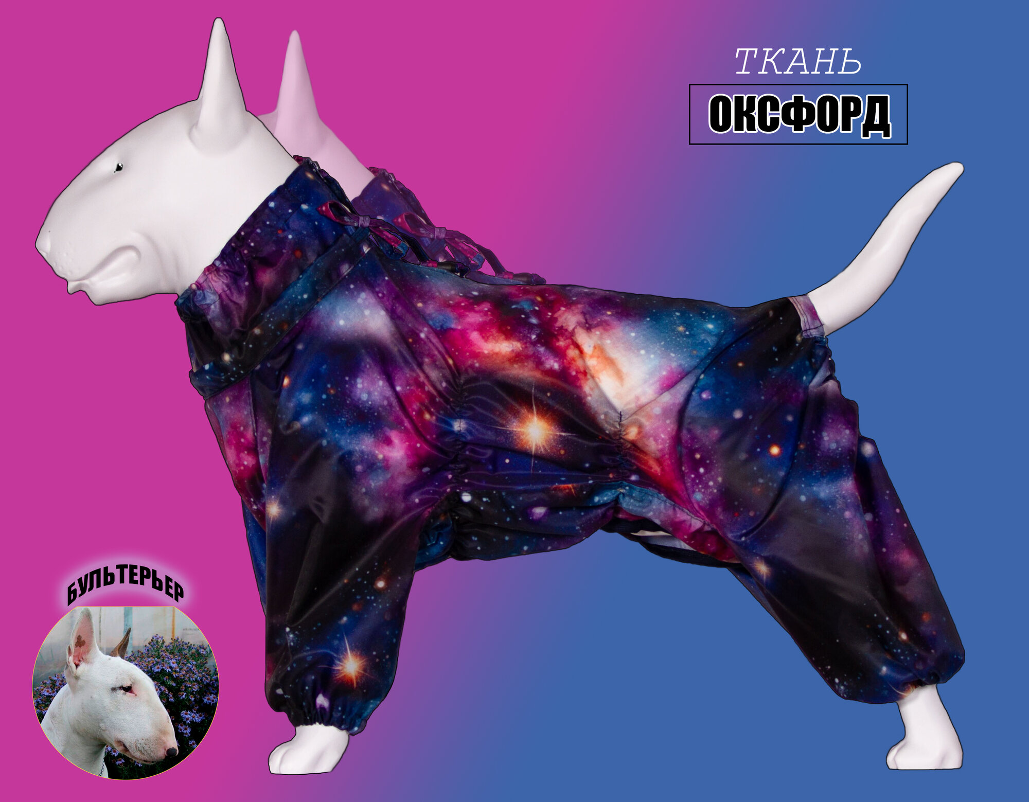 СохранитьКомбинезон-дождевик для бультерьера суки, повышенной прочности, дизайнерский принт, цвет галактика интересное: