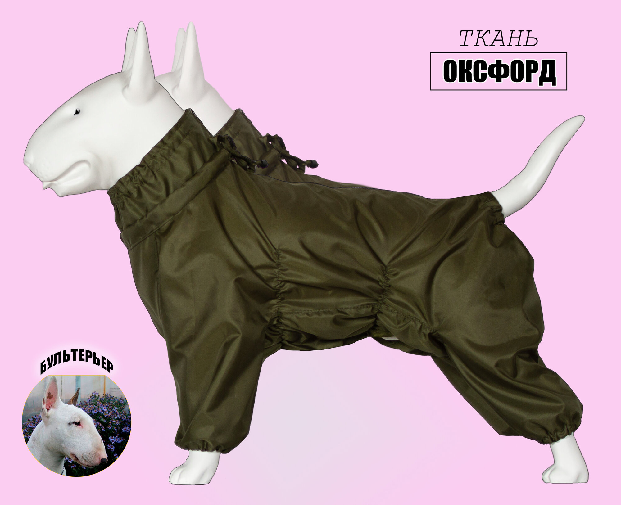 Комбинезон-дождевик для бультерьера кобеля, повышенной прочности, цвет хаки