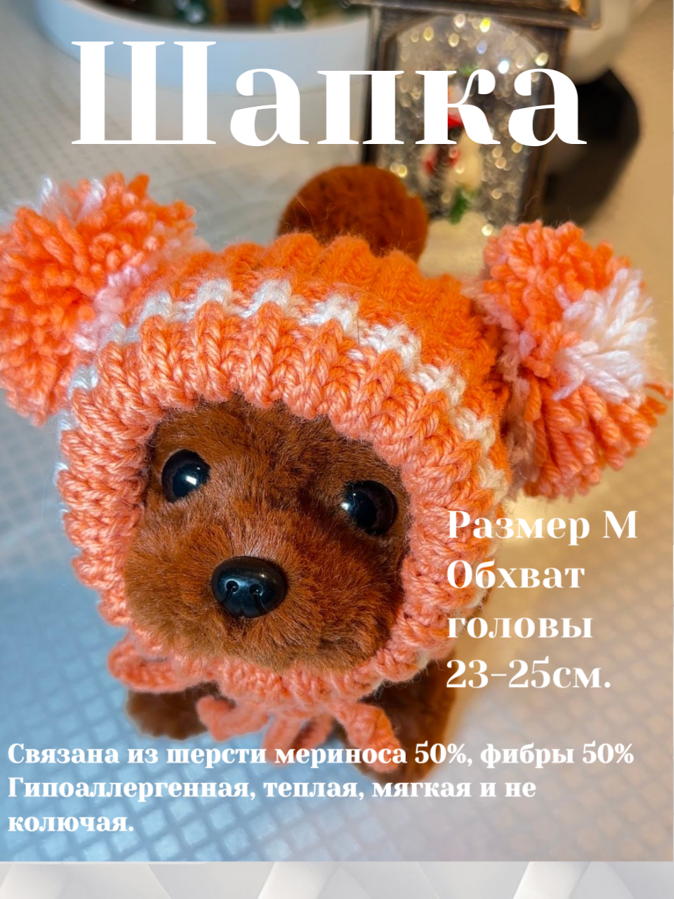 Шапка для собак. Той терьер, Йорк, Чихуа-хуа. Р-р М (23-25см. окр. головы) Цвет коралл интересное: