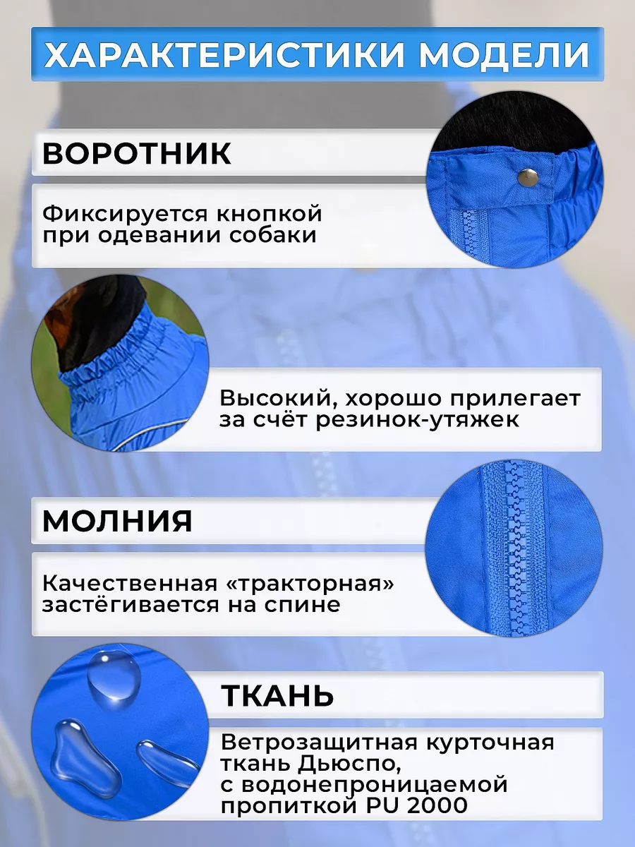 Комбинезон для собак, от грязи и воды, непромокаемый, ветрозащитный, р.25-2 (самец), синий интересное: