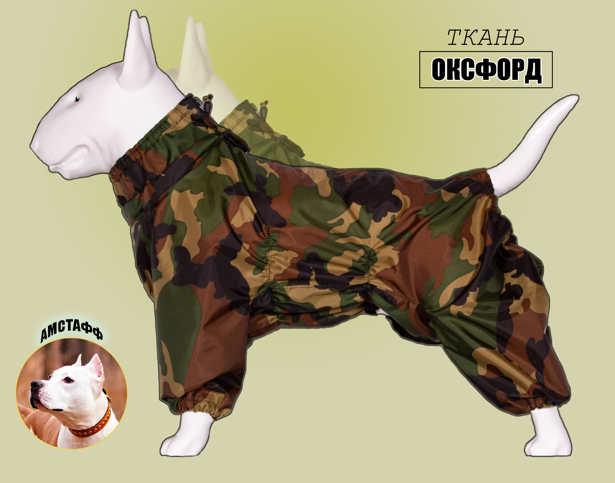Купить Дождевик-комбинезон для американского стаффордширского терьера кобеля, повышенной прочности, цвет зеленый камуфляж