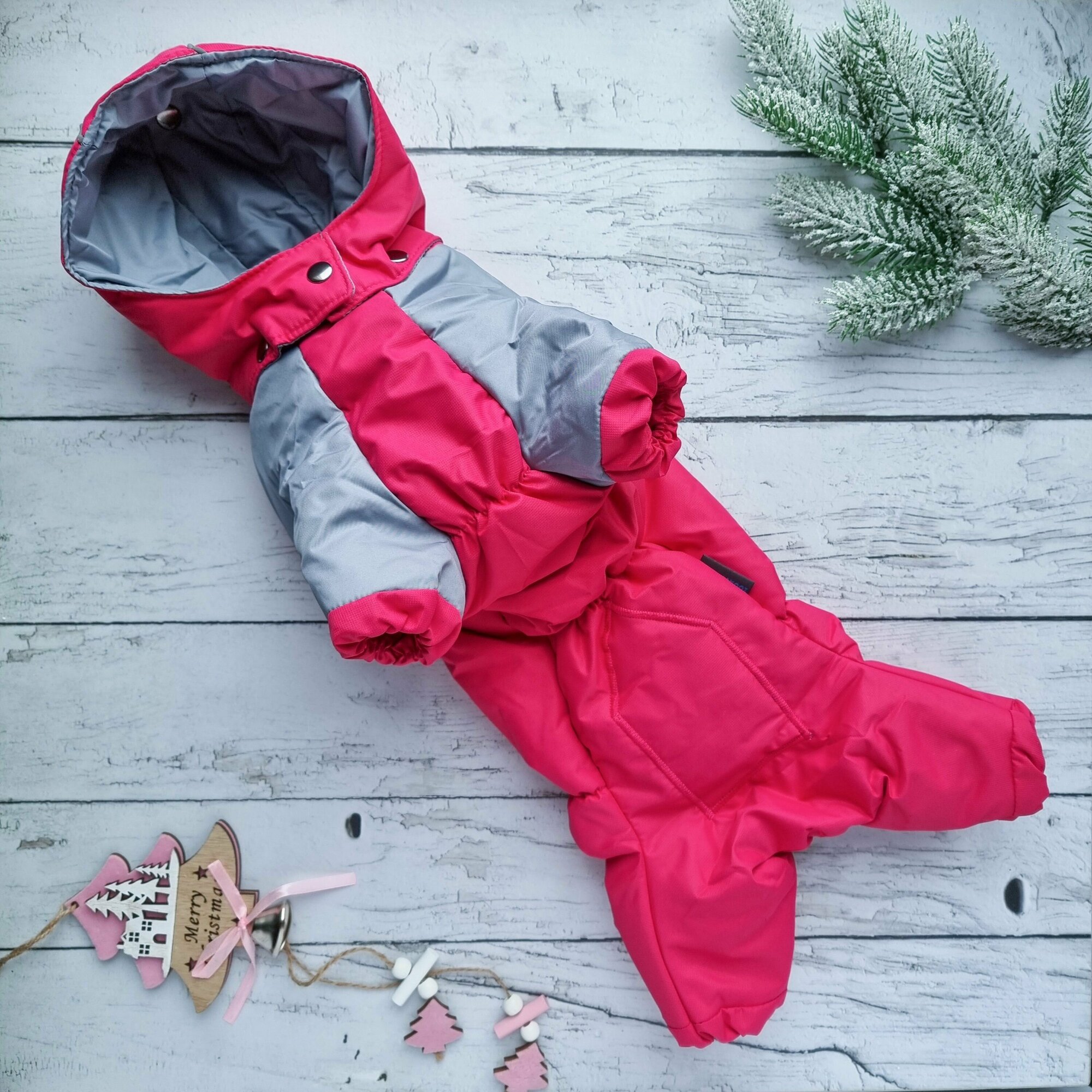 Купить Комбинезон зимний/демисезон "ZOO" со съемным капюшоном для такс, пекинесов, ши-тцу, фуксия/серый, ТМ-1(33см)