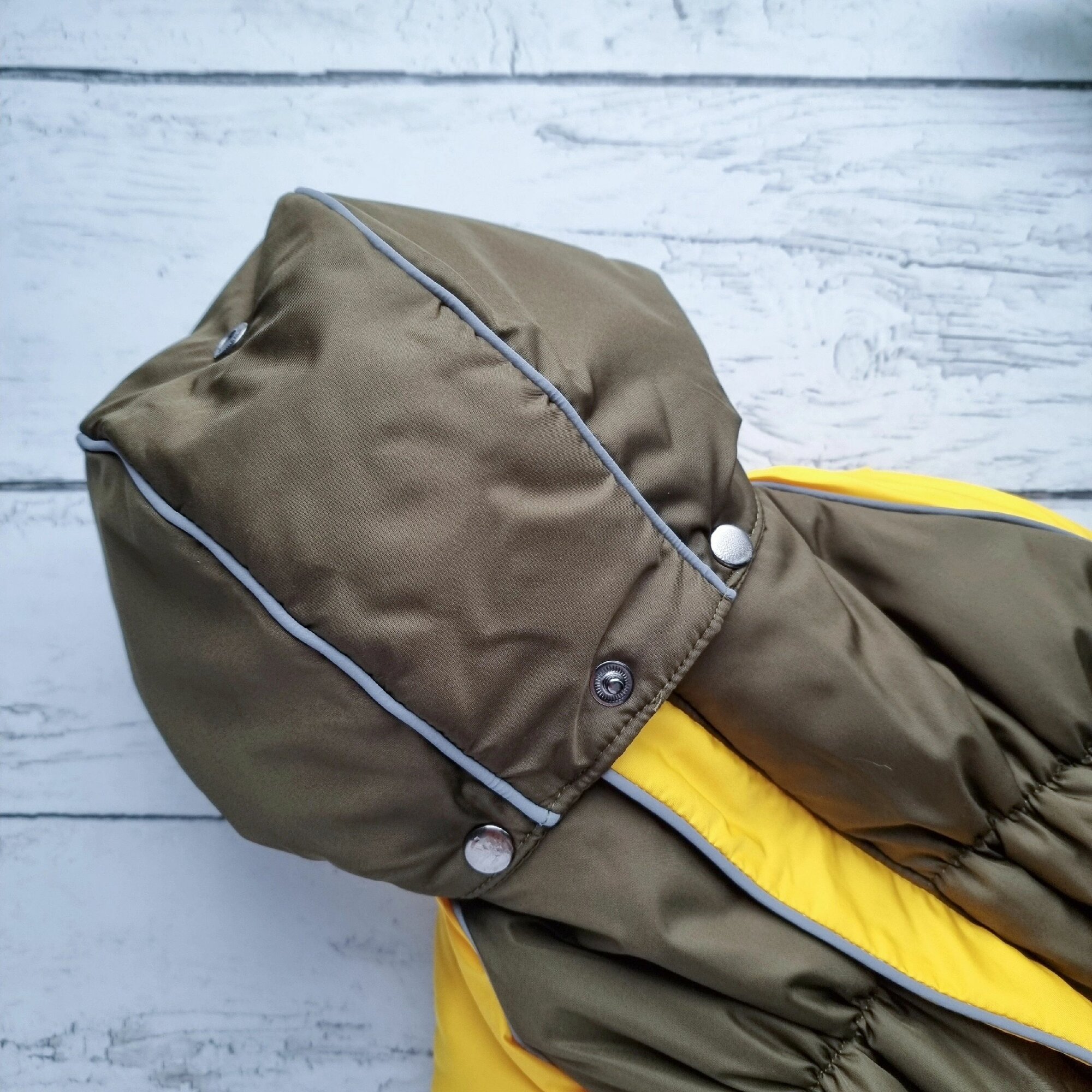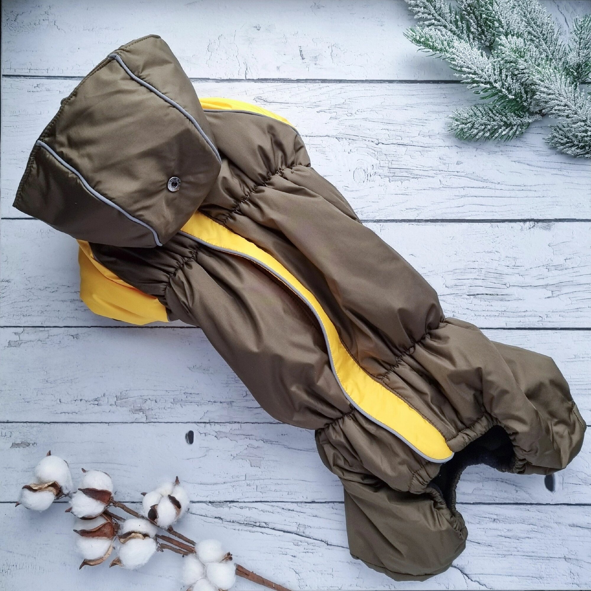 Комбинезон зимний/демисезон "ZOO" со съемным капюшоном для такс, пекинесов, ши-тцу, хаки/желтый, ТМ-1(33см)