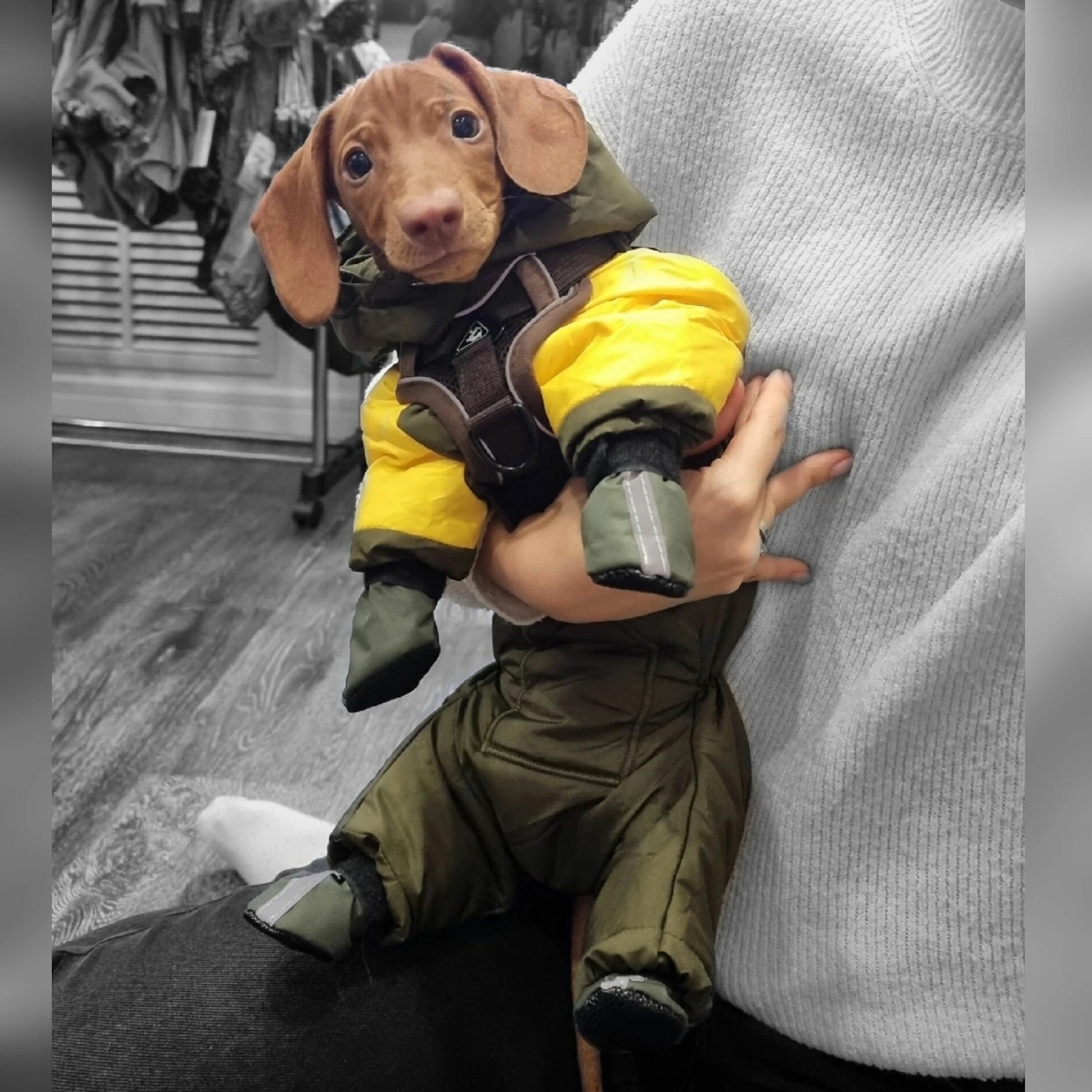 СохранитьКомбинезон зимний/демисезон "ZOO" со съемным капюшоном для такс, пекинесов, ши-тцу, хаки/желтый, ТМ-2(38см) интересное: