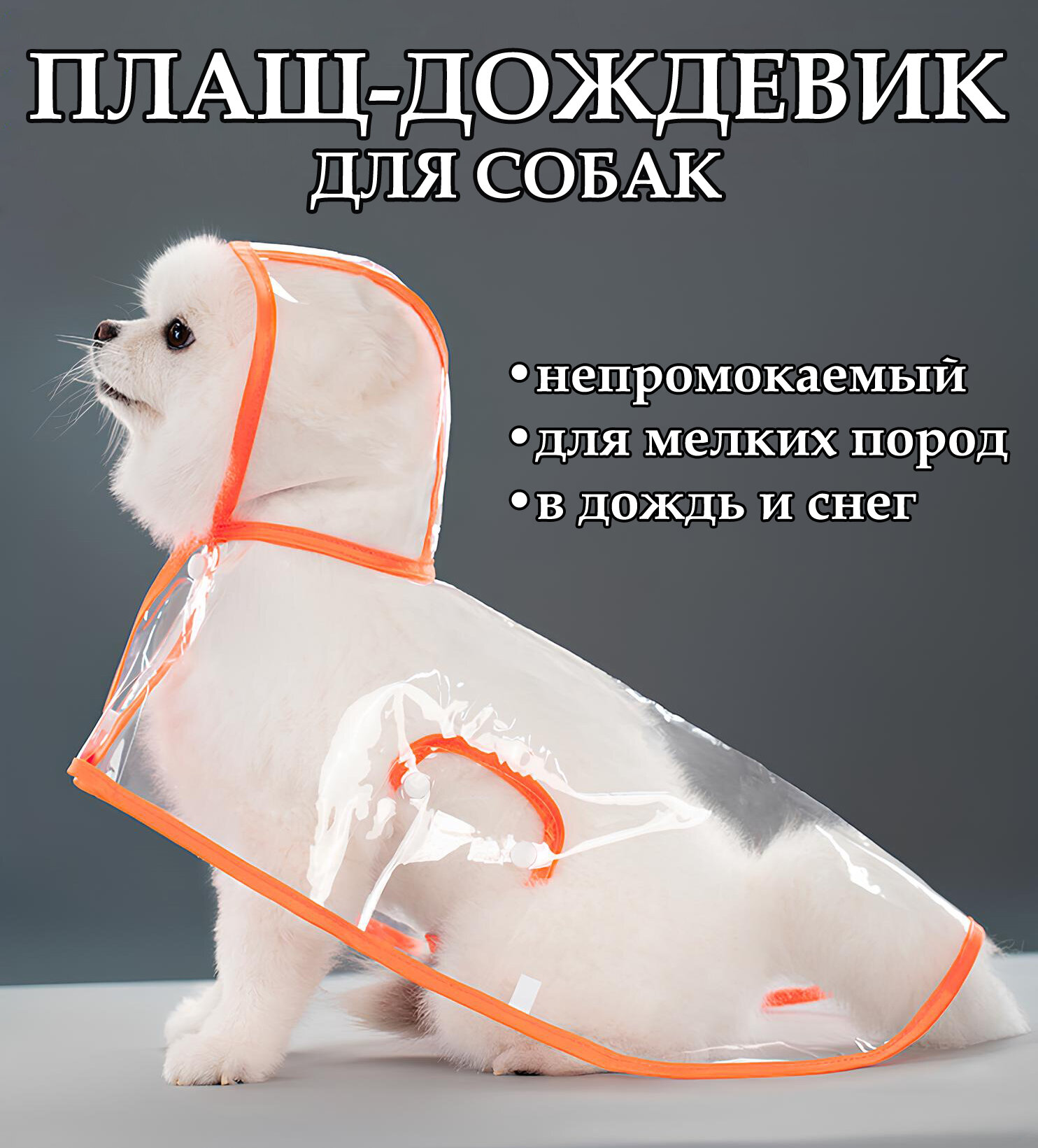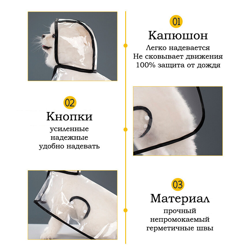 Плащ-дождевик с капюшоном для собак мелких пород, непромокаемый комбинезон. Размер М интересное: