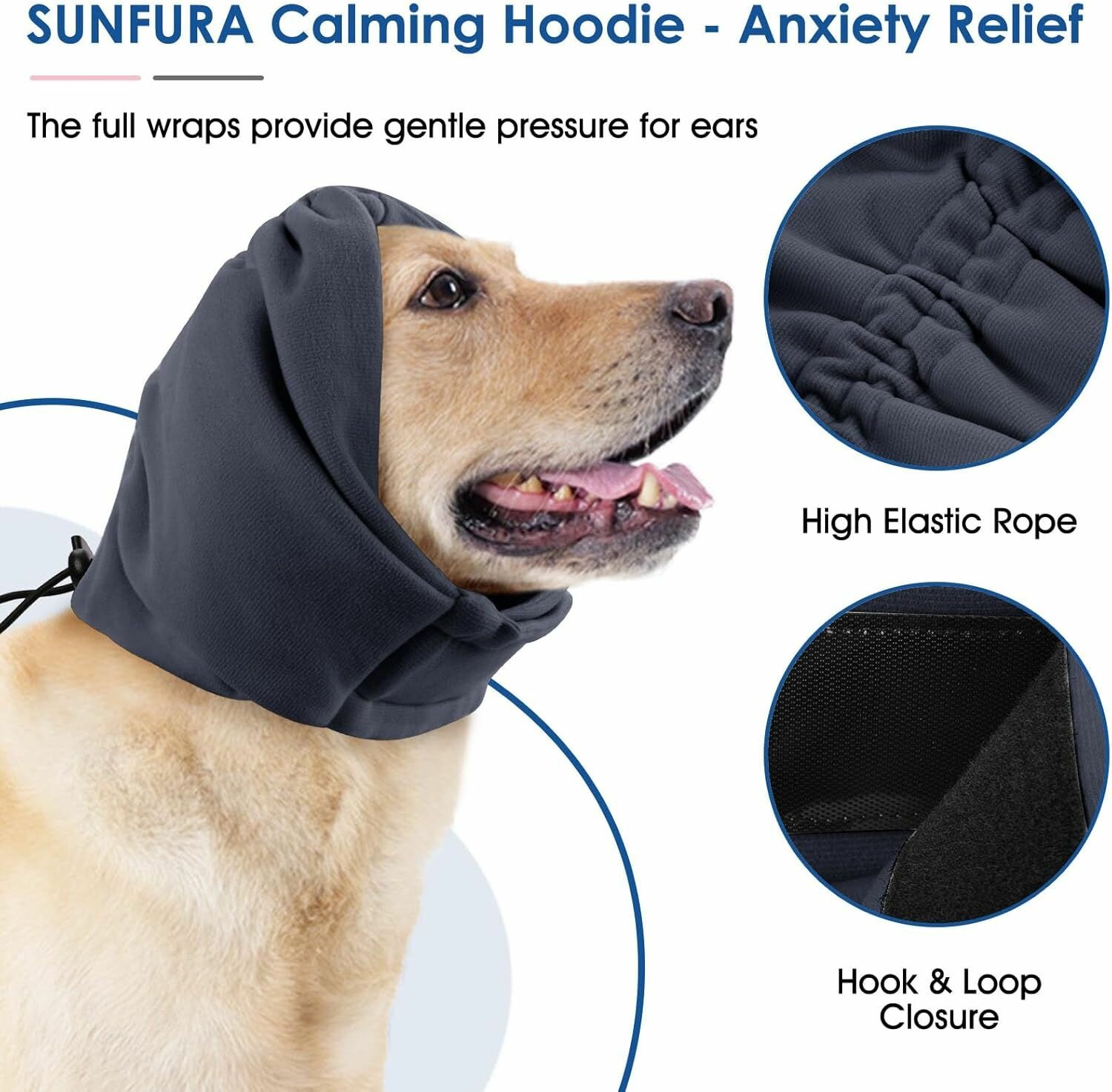 Шумовая защита слуха SUNFURA, для собак, размер S, серая, на липучках