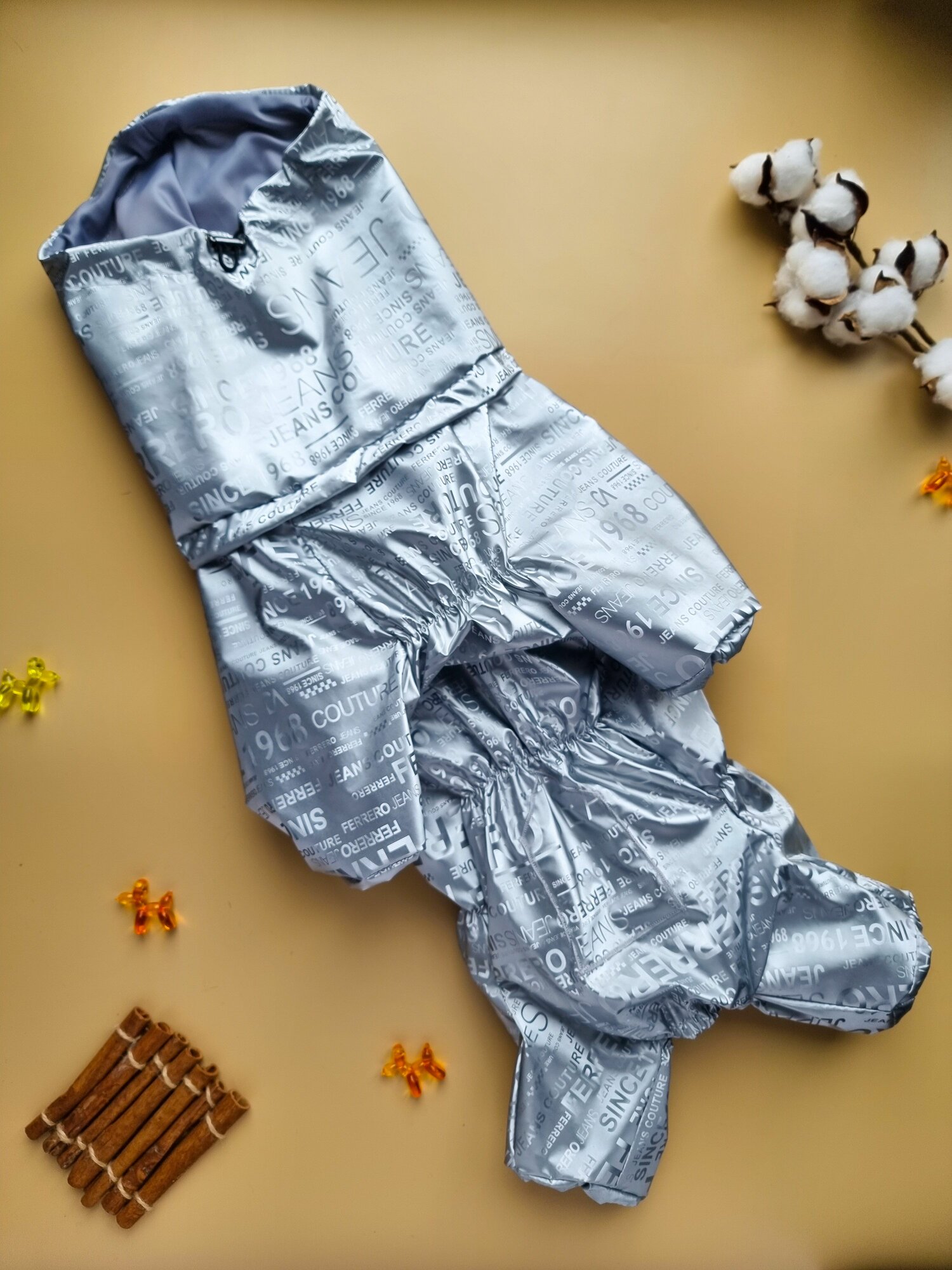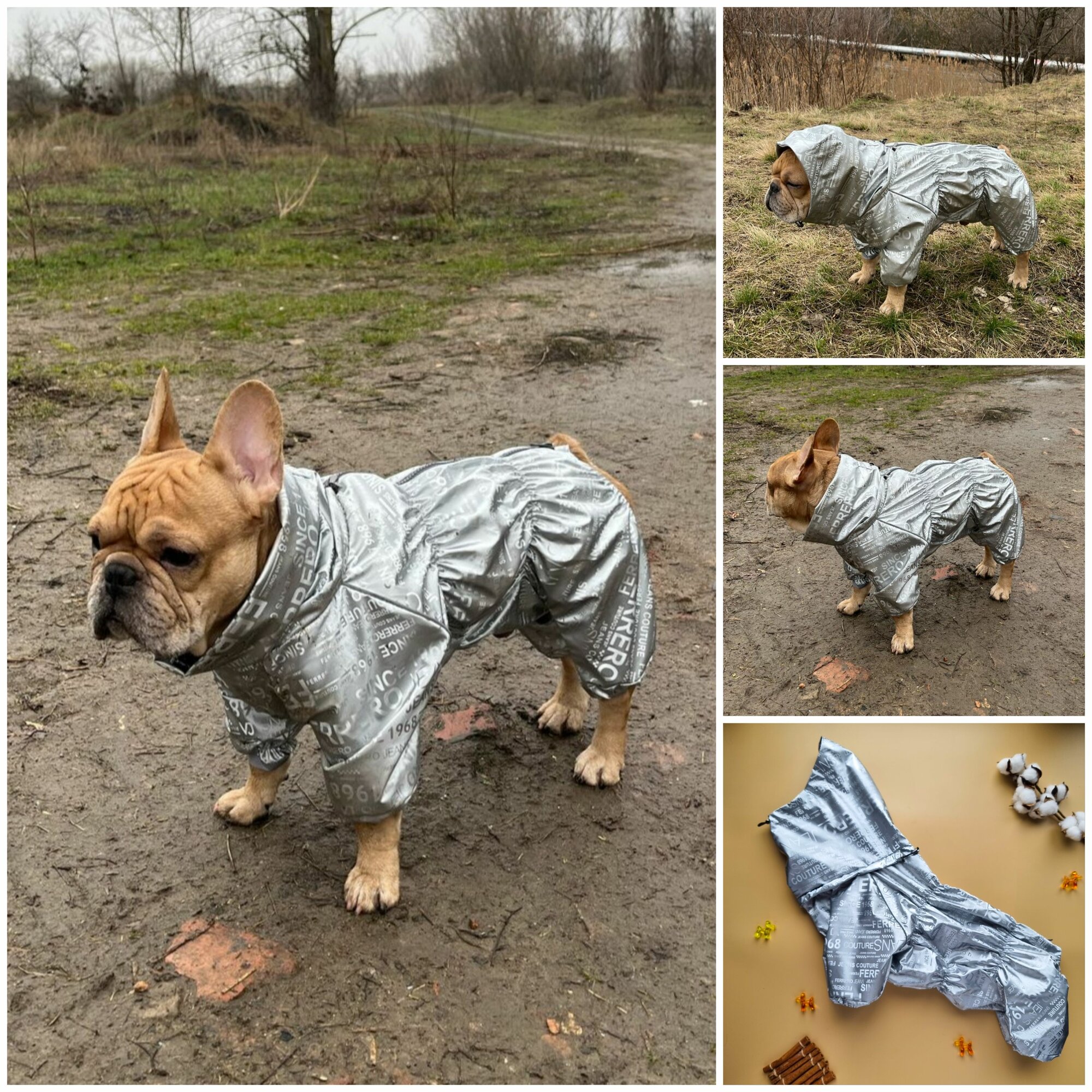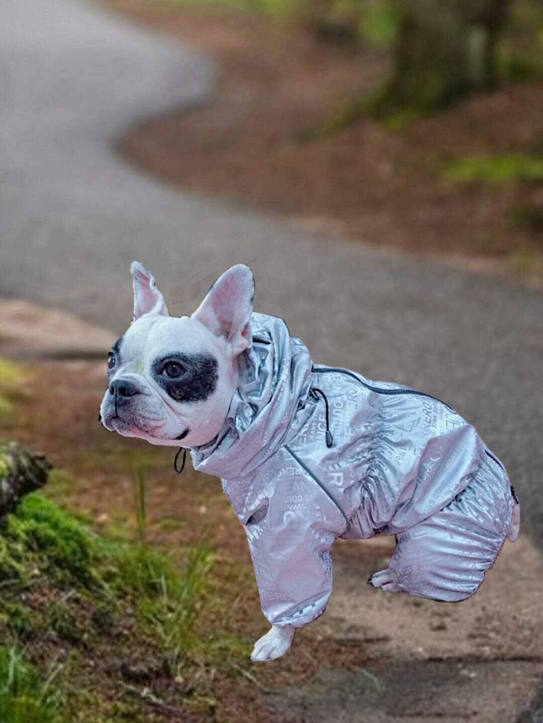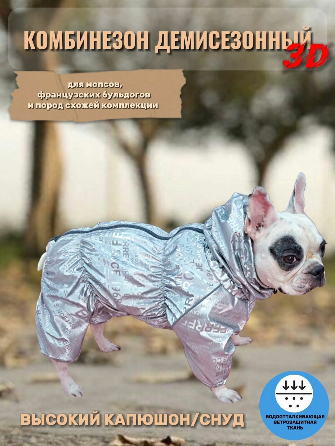 СохранитьКомбинезон демисезонный 3D с высоким воротом/снуд для собак: французских бульдогов, мопсов, серебро, ФР-2 интересное: