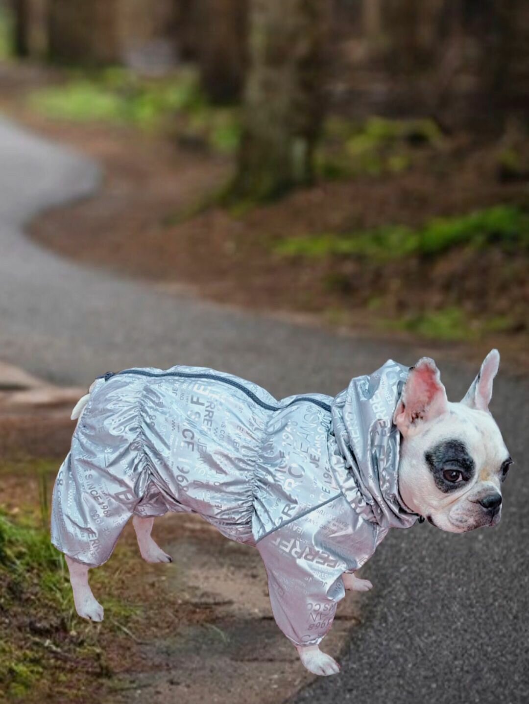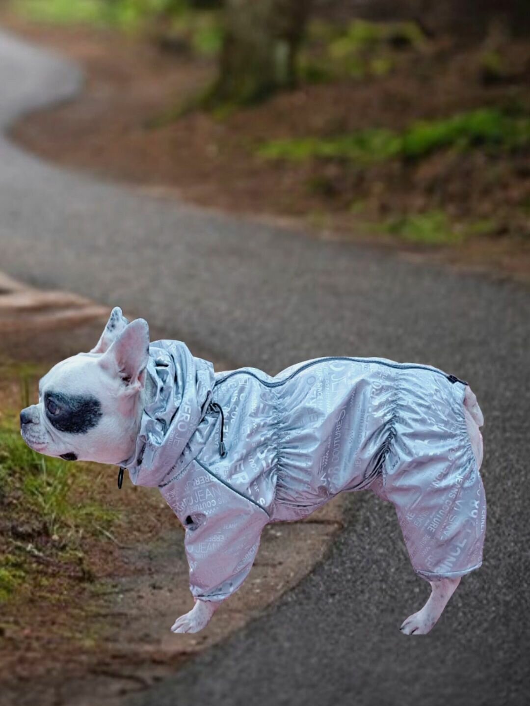 Купить Комбинезон демисезонный 3D с высоким воротом/снуд для собак: французских бульдогов, мопсов, серебро, ФР-2