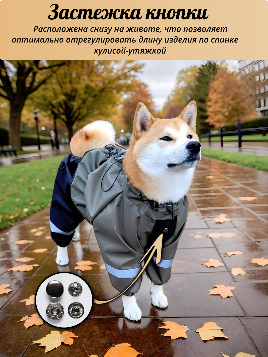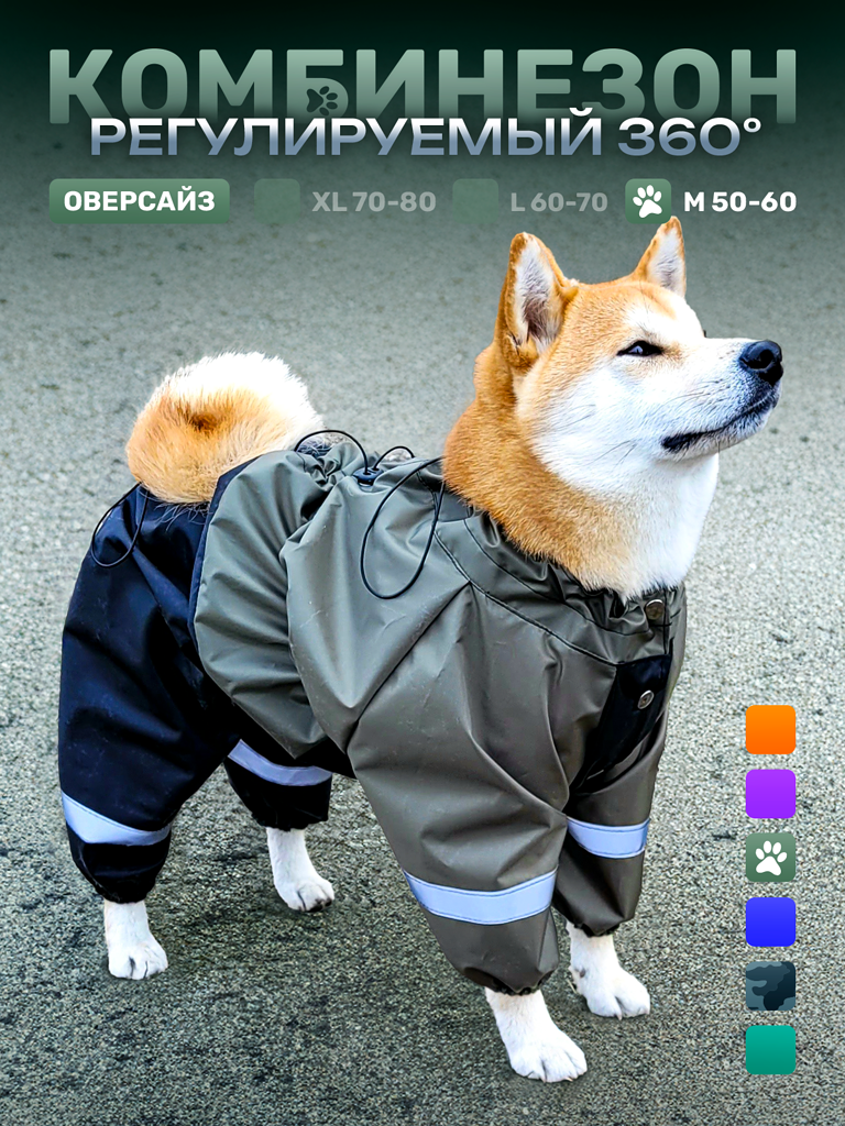 Комбинезон дождевик для собак средних и крупных пород с регулировкой размера 50-60см Хаки олива / черный интересное: