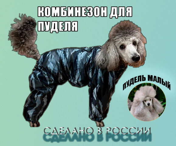 СохранитьДождевик-комбинезон для малого пуделя кобеля, повышенной прочности, цвет синий камуфляж интересное:
