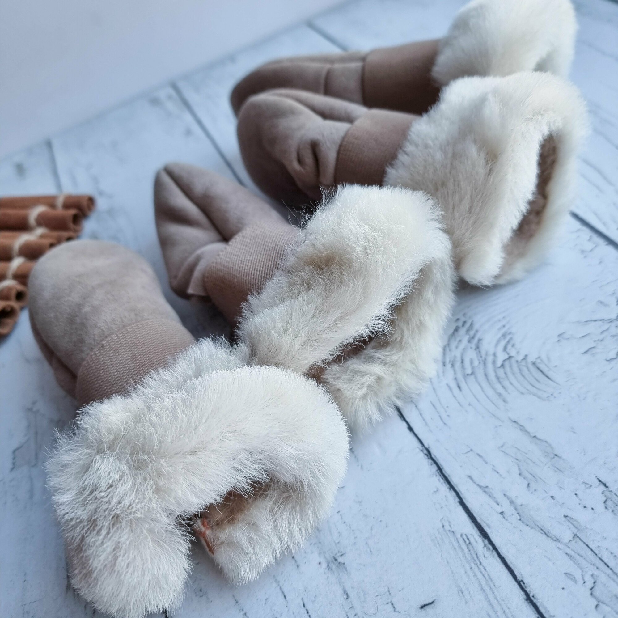 Купить Зимние сапожки из натурального меха для собак мелких пород/кошек, р-р 1, бежевый