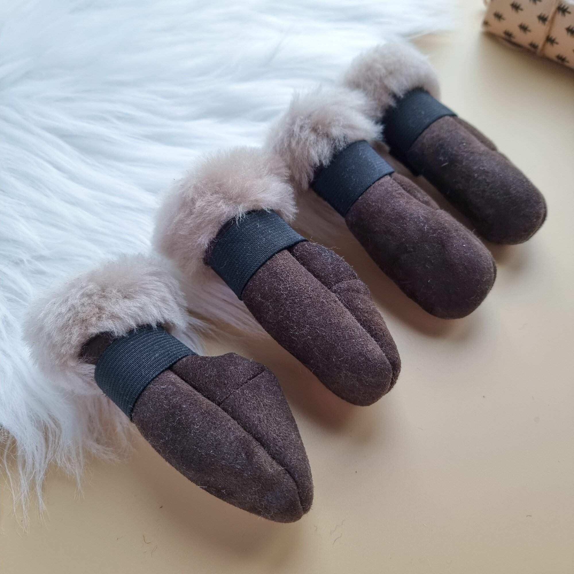 Зимние сапожки из натурального меха для собак мелких пород/кошек, р-р5, св. коричневый