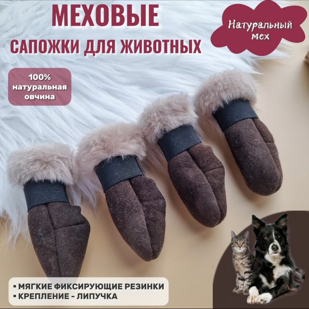 Зимние сапожки из натурального меха для собак мелких пород/кошек, р-р4, коричневый