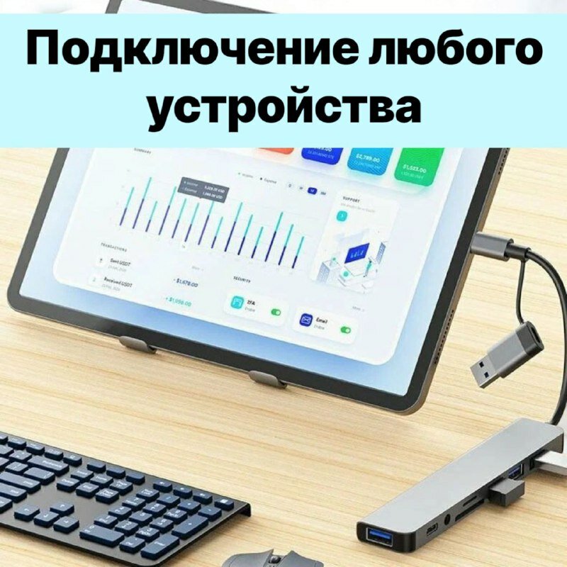 "AOCV USB Type C Hub" - 8-в-1 переходник для USB 3,0 и USB 2,0, USB/C, TF, AUDIO интересное: