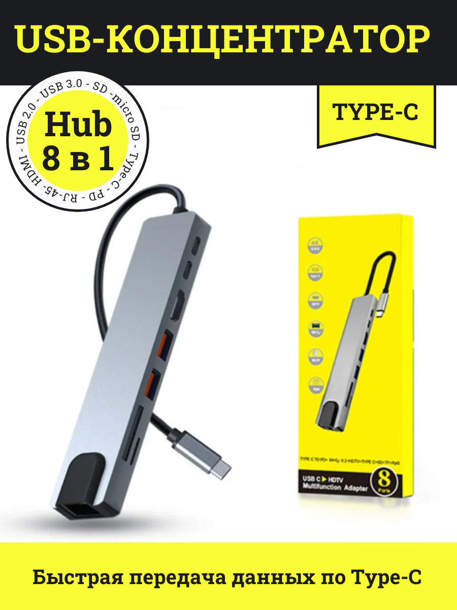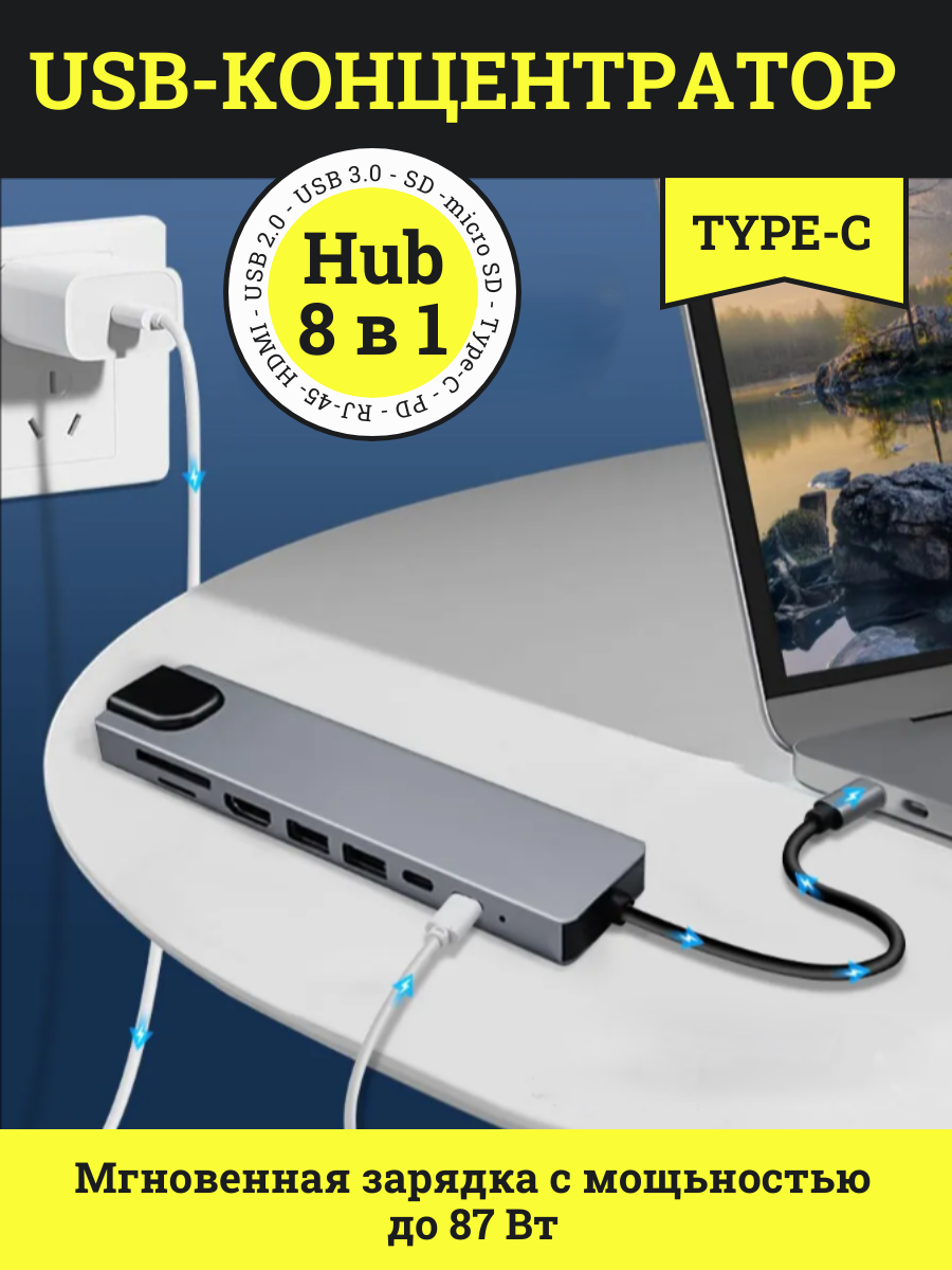 Хаб / USB-концентратор с Type-C HDMI | RJ-45 | 2xUSB 3.0 | 2xType-C | SD | TF | PD интересное: