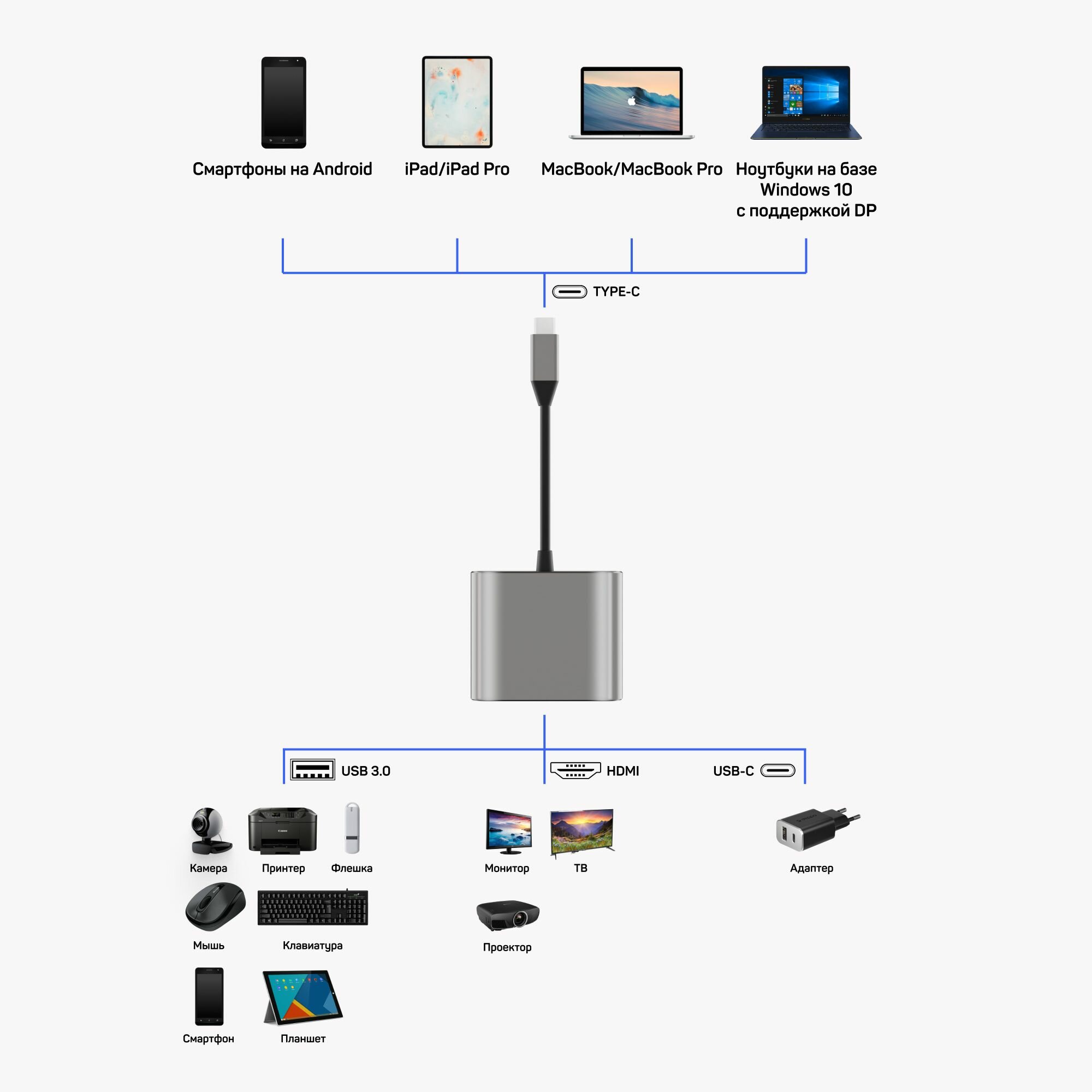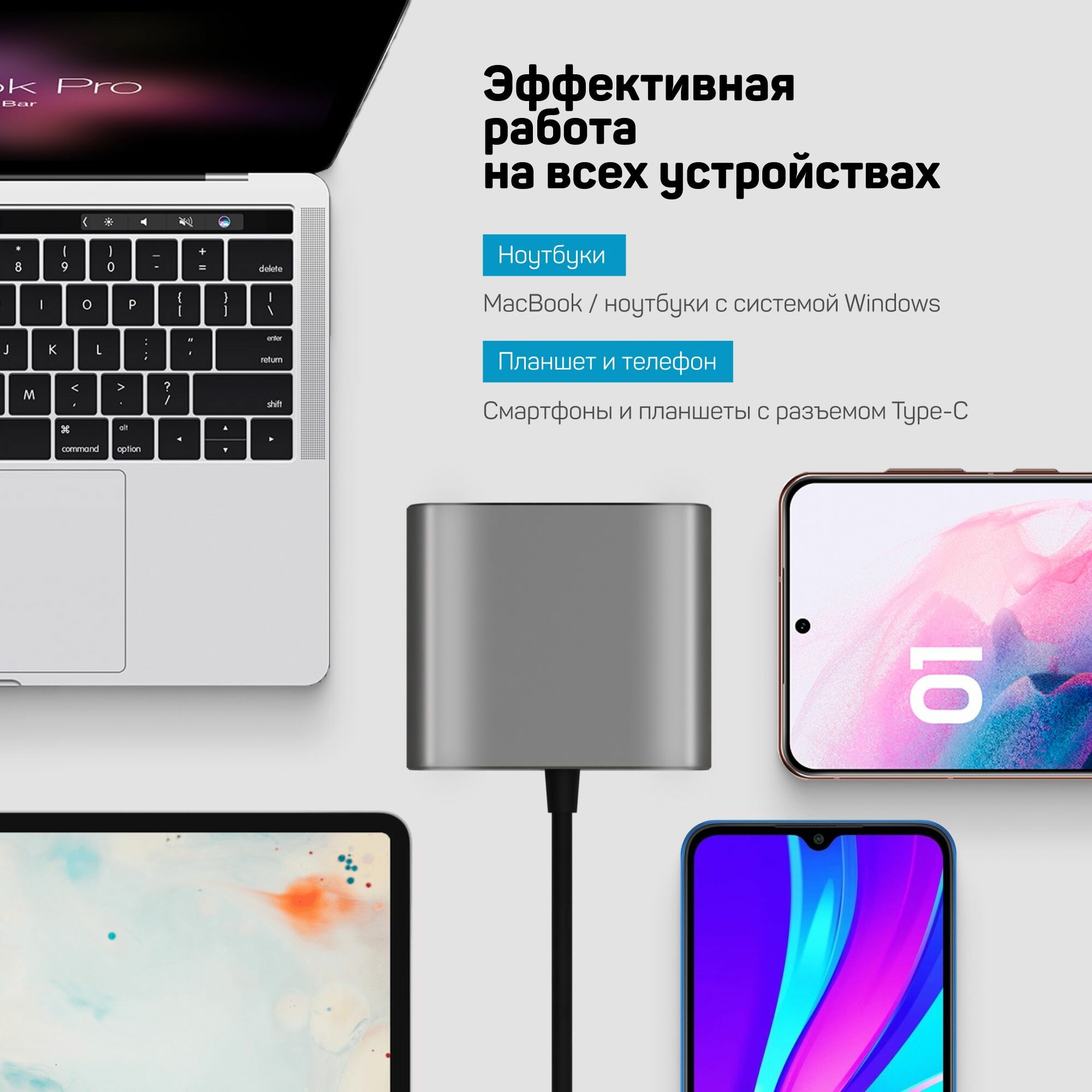 СохранитьUSB Type-C хаб с OTG, разветвитель, докстанция, HDMI 4К, концентратор универсальный с дополнительным питанием 100W интересное: