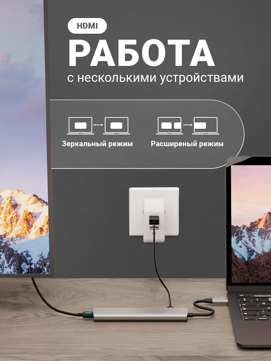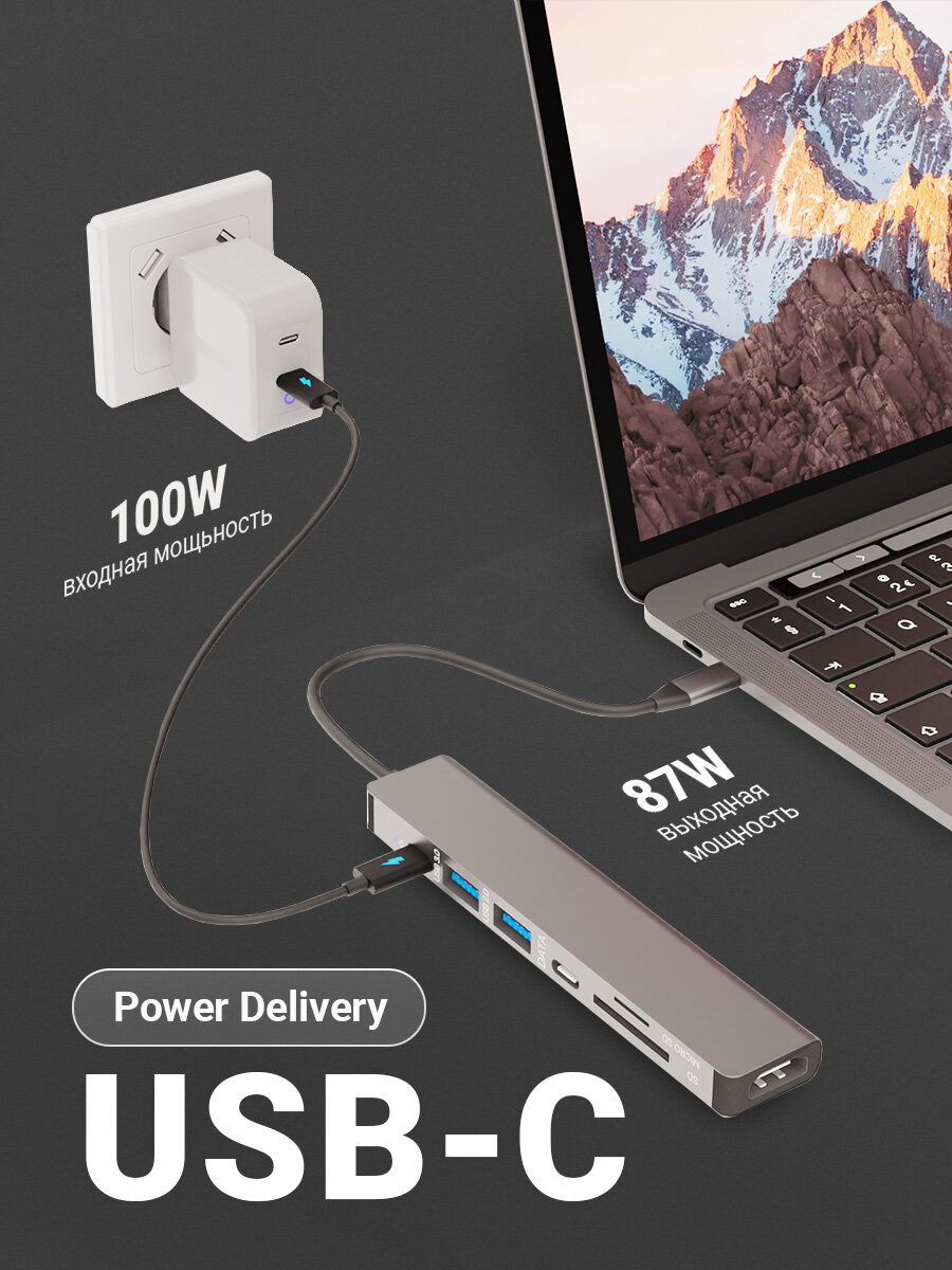 USB Type-C хаб с OTG, разветвитель, докстанция, HDMI 4К, концентратор универсальный с дополнительным питанием 100W