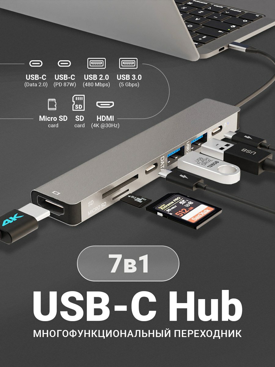 СохранитьUSB Type-C хаб с OTG, разветвитель, докстанция, HDMI 4К, Thunderbolt, SD, MicroSD, TF Card, концентратор универсальный интересное:
