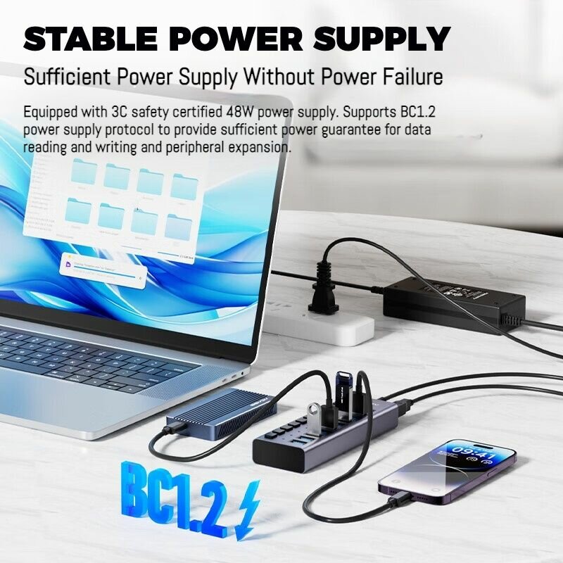 Сохранить10-портовый USB-концентратор Acasis, USB-разветвитель USB 3.0, 5 Гбит/с для ноутбука интересное: