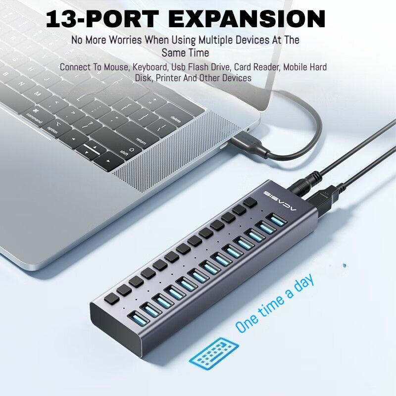 Купить 13-портовый USB-концентратор Acasis, USB-разветвитель USB 3.0, 5 Гбит/с для ноутбука