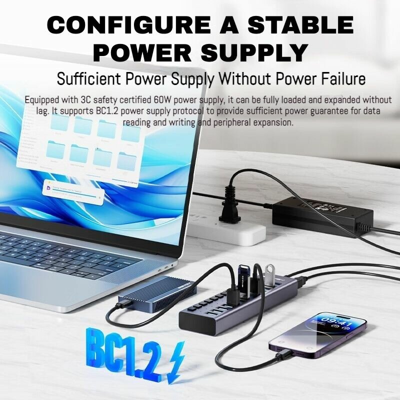 10-портовый USB-концентратор Acasis, USB-разветвитель USB 3.0, 5 Гбит/с для ноутбука