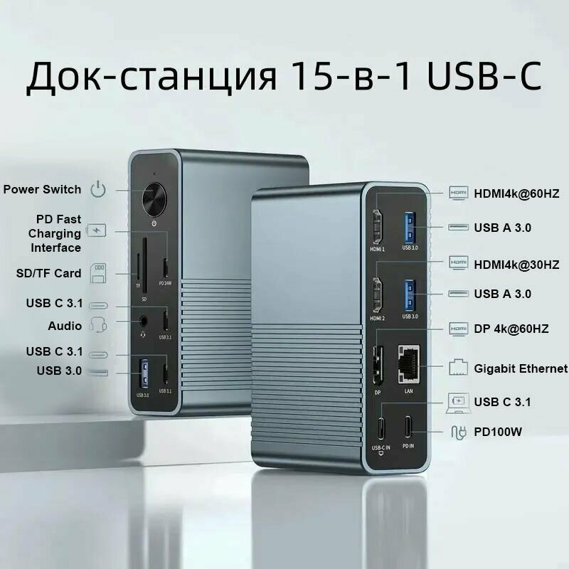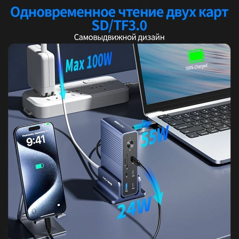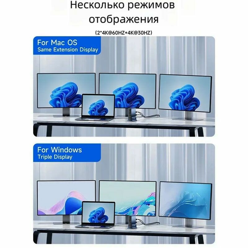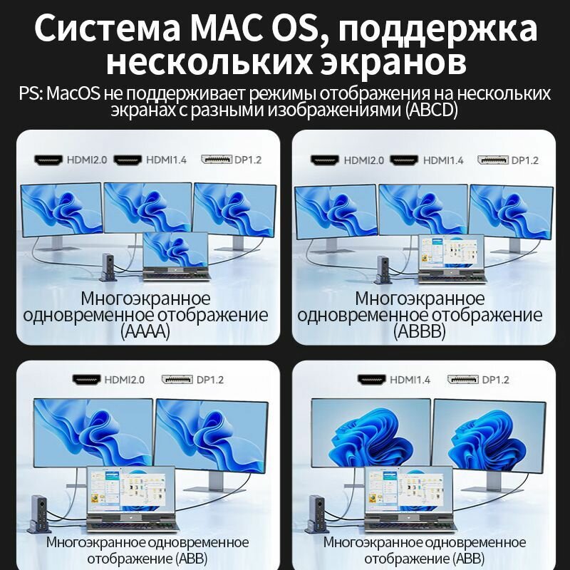 СохранитьНастольная док-станция ACASIS 15-в-1 с интерфейсом Type-C, DP, Thunderbolt 4, четырехэкранным дисплеем с частотой 4K60 Гц, графической док-станцией HDMI интересное: