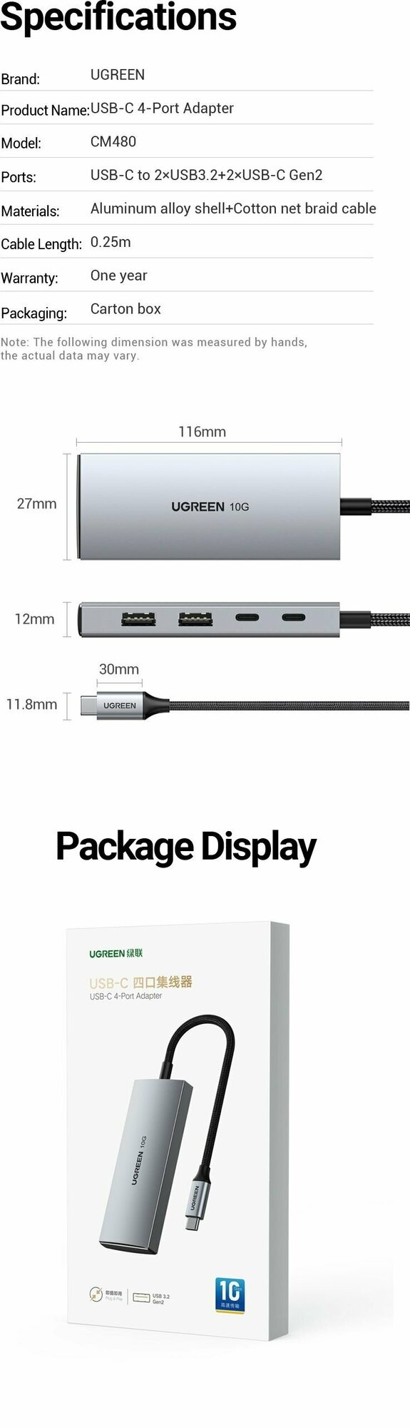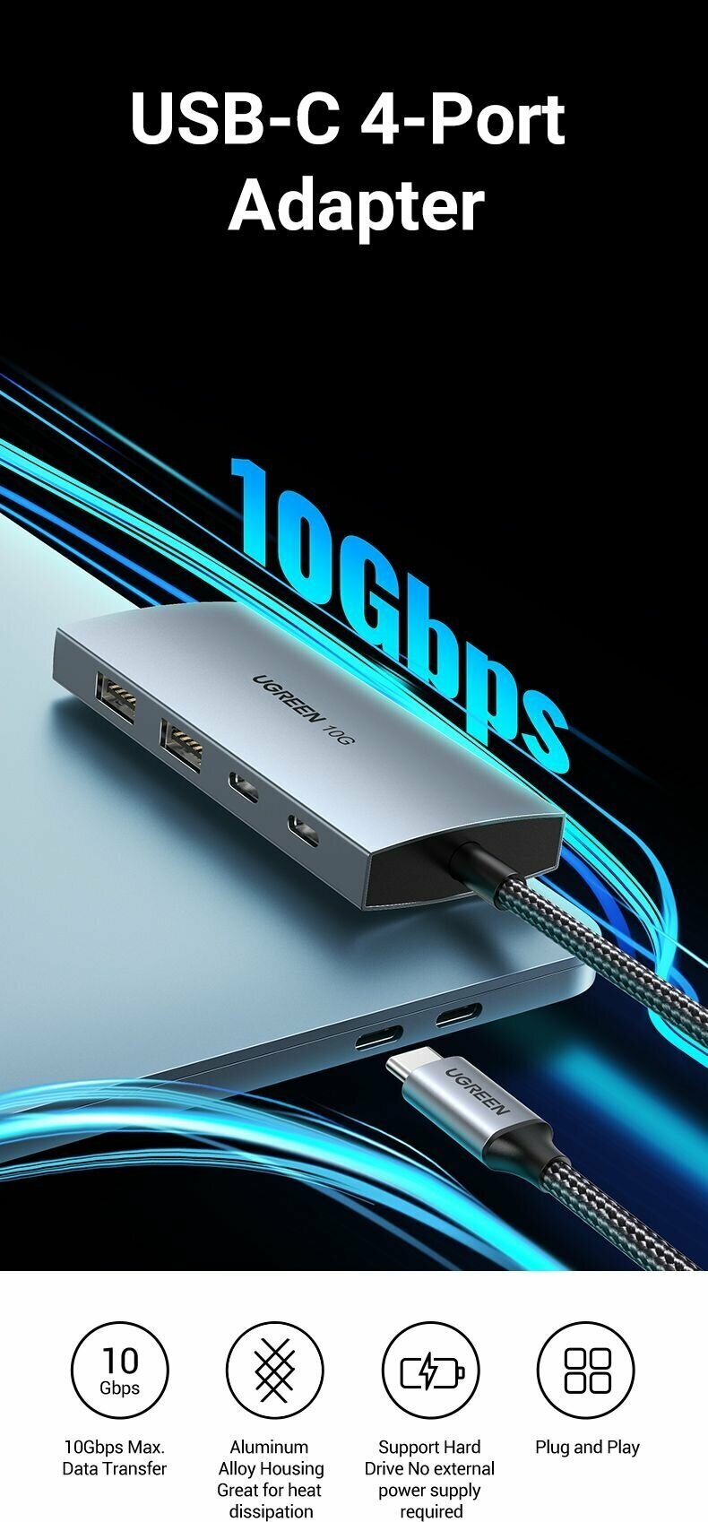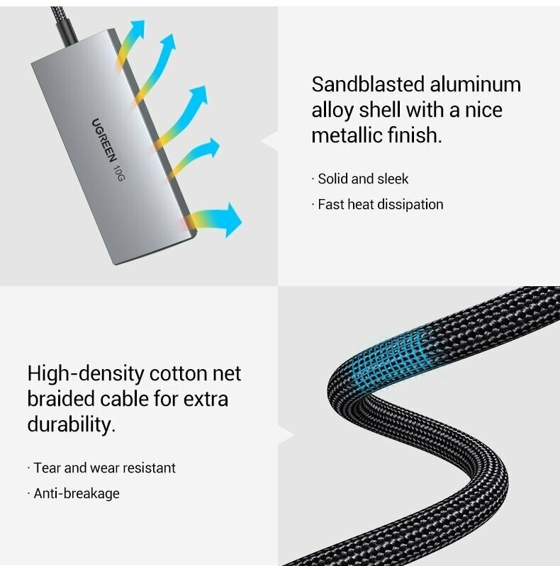Док-станция UGREEN USB-C to USB3.1*2 + USB-C10Gb*2 (CM480-30758) серый интересное: