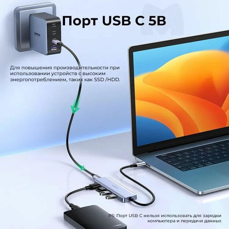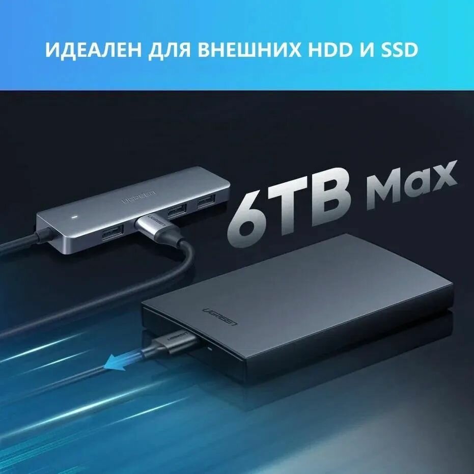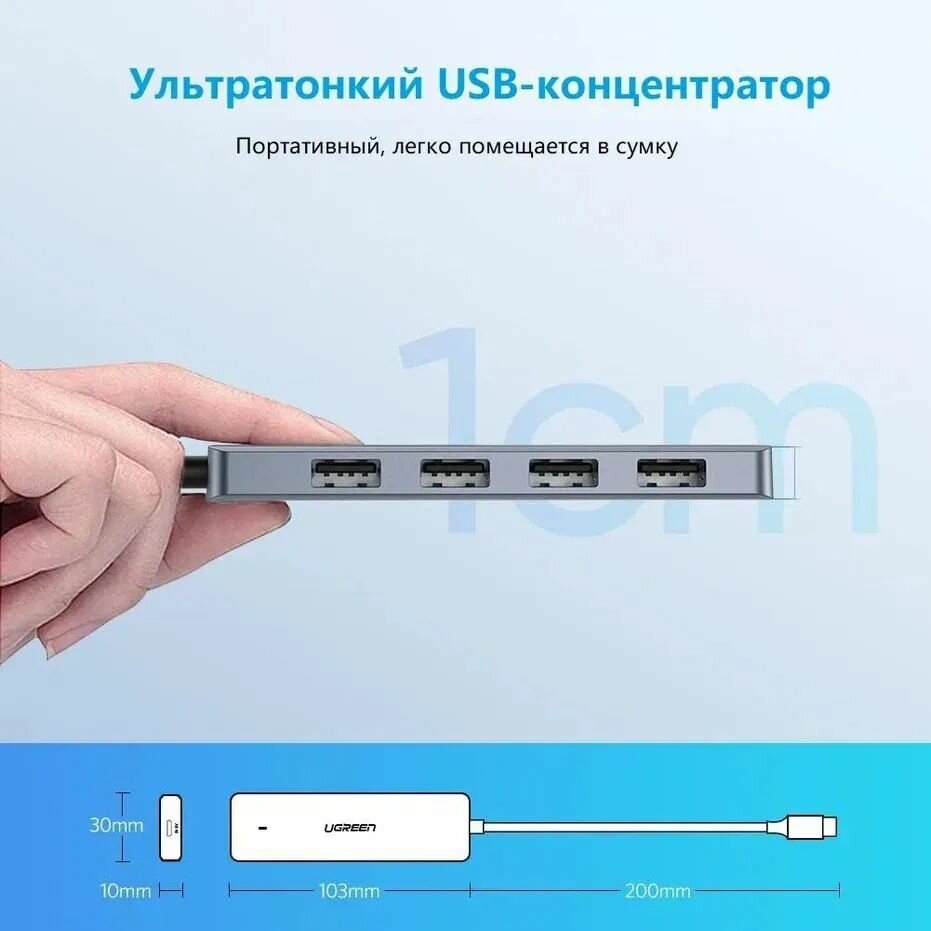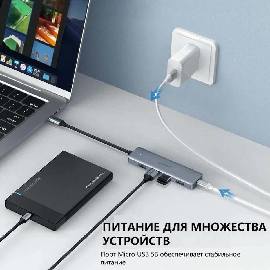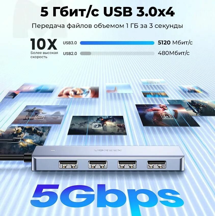 Разветвитель портов UGREEN CM219 4-Port USB3.0 Hub with Micro USB Power Supply (15394) интересное: