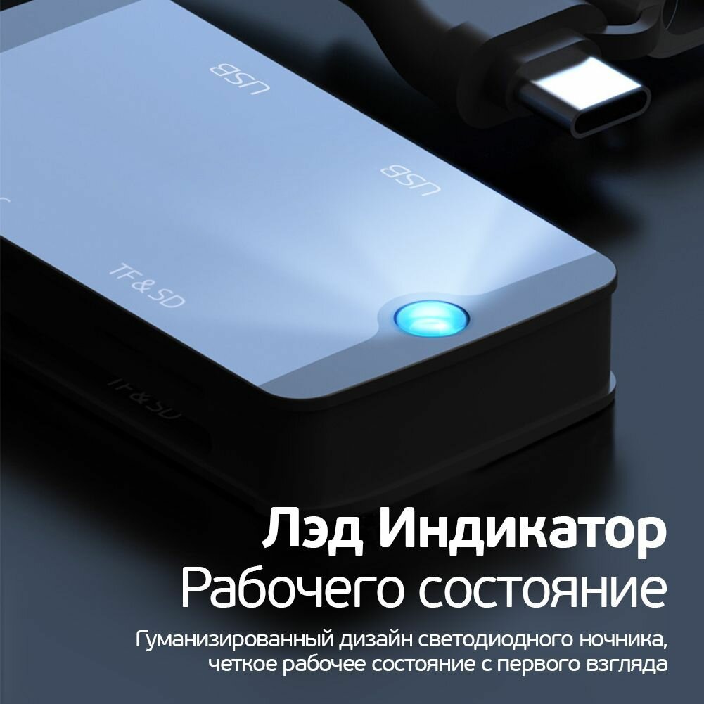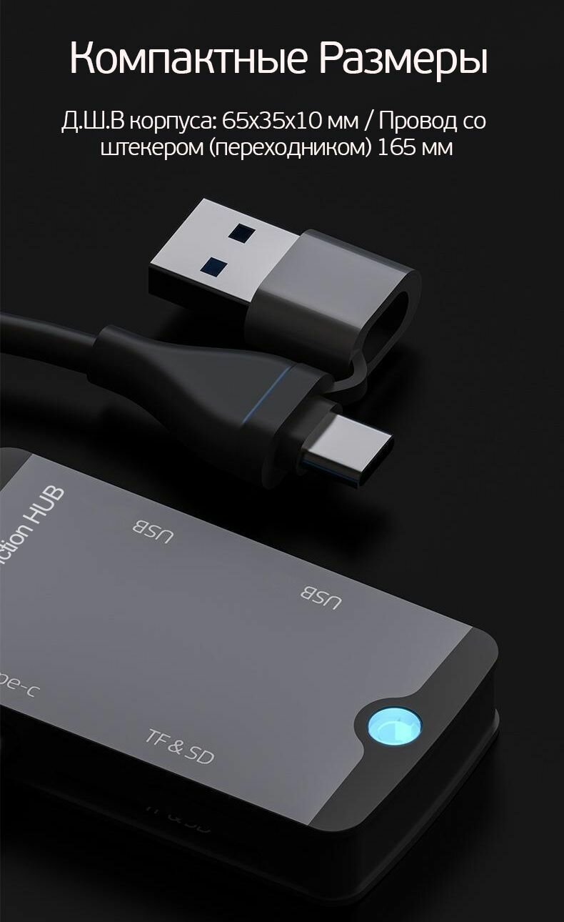 Мультифункциональный Хаб концентратор 5 в 1 + Картридер, USB-A и Type-С интерфейс 2 в 1, JY308-805, серый металлик интересное: