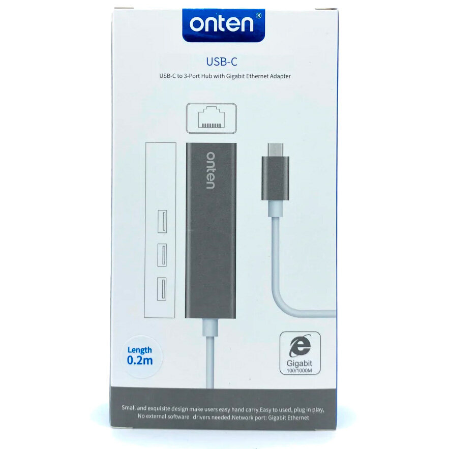 USB Type-C разветвитель хаб Onten на 4 порта 1xEthernet RJ45 , 3xUSB 3.0 для ноутбука, Macbook, ПК, смартфона интересное: