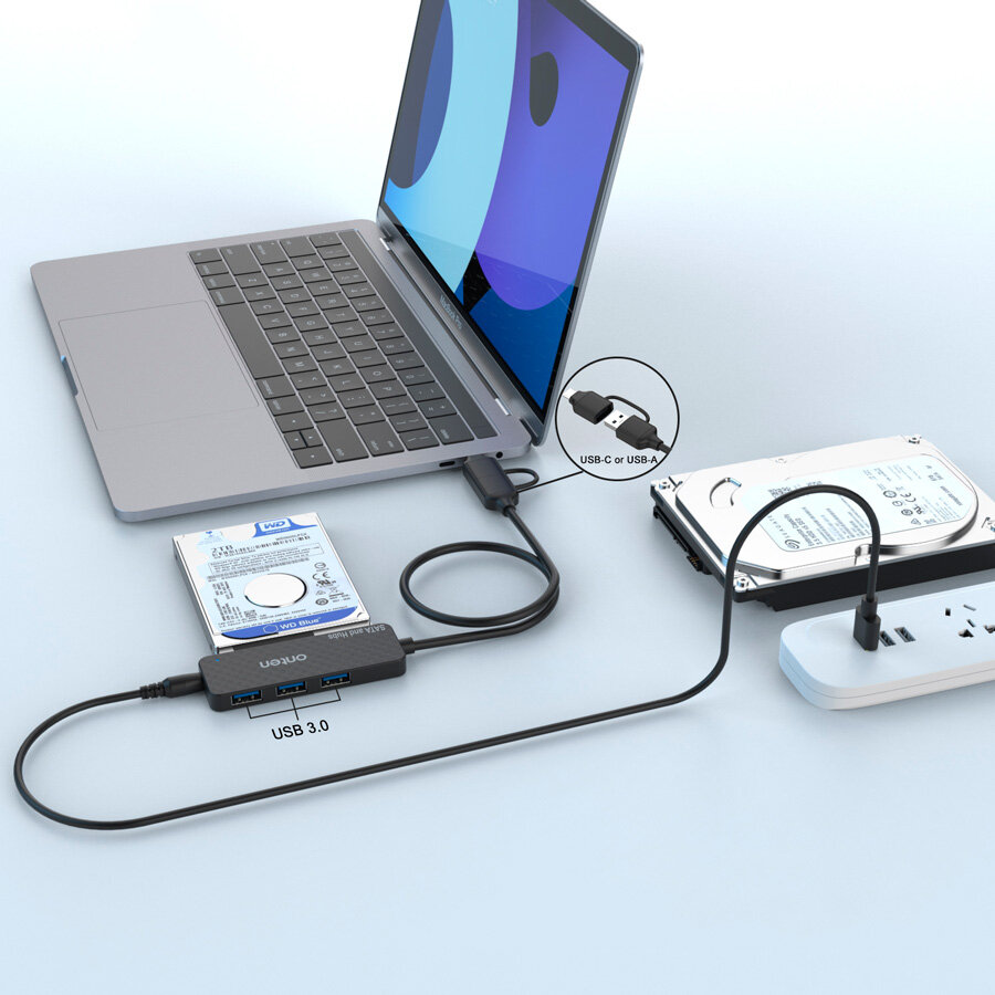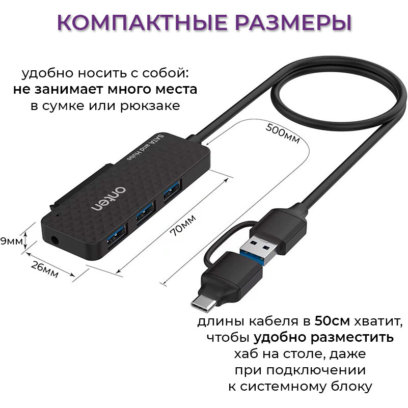 Купить USB 3.0 + Type-C разветвитель хаб Onten на 4 выхода 3xUSB 3.0 , 1xSATA Adapter для ноутбука, Macbook, ПК