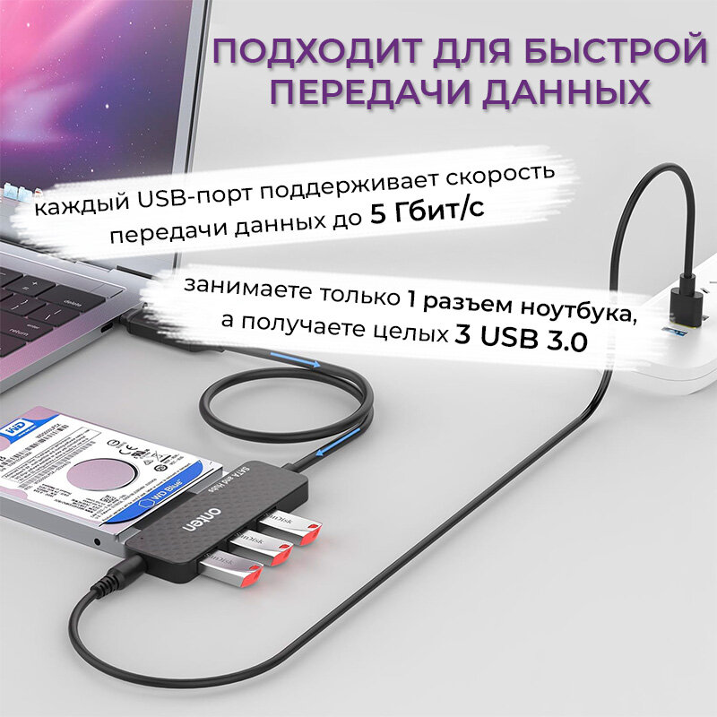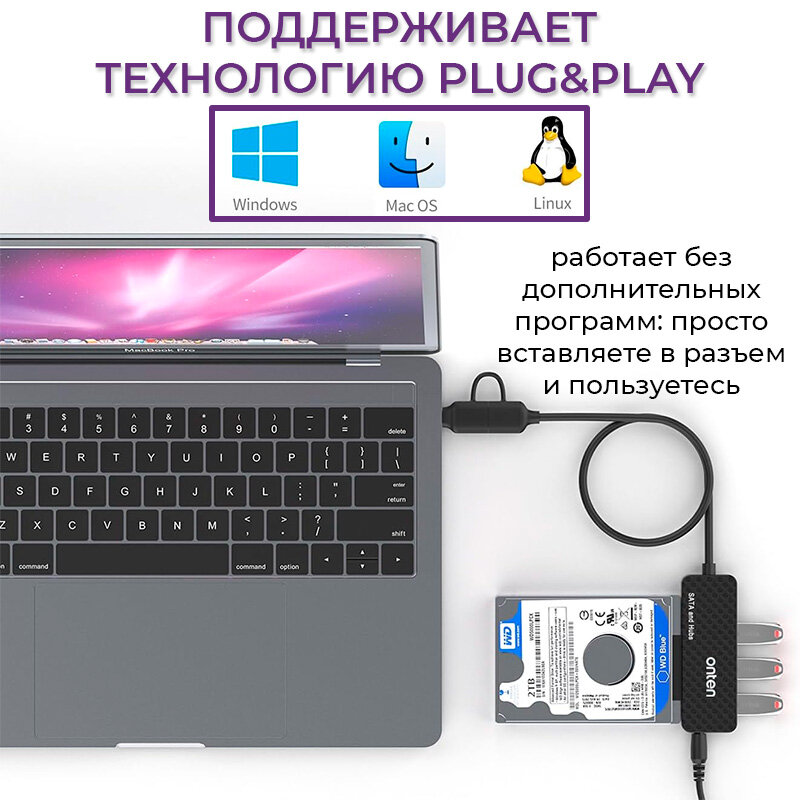 USB 3.0 + Type-C разветвитель хаб Onten на 4 выхода 3xUSB 3.0 , 1xSATA Adapter для ноутбука, Macbook, ПК интересное: